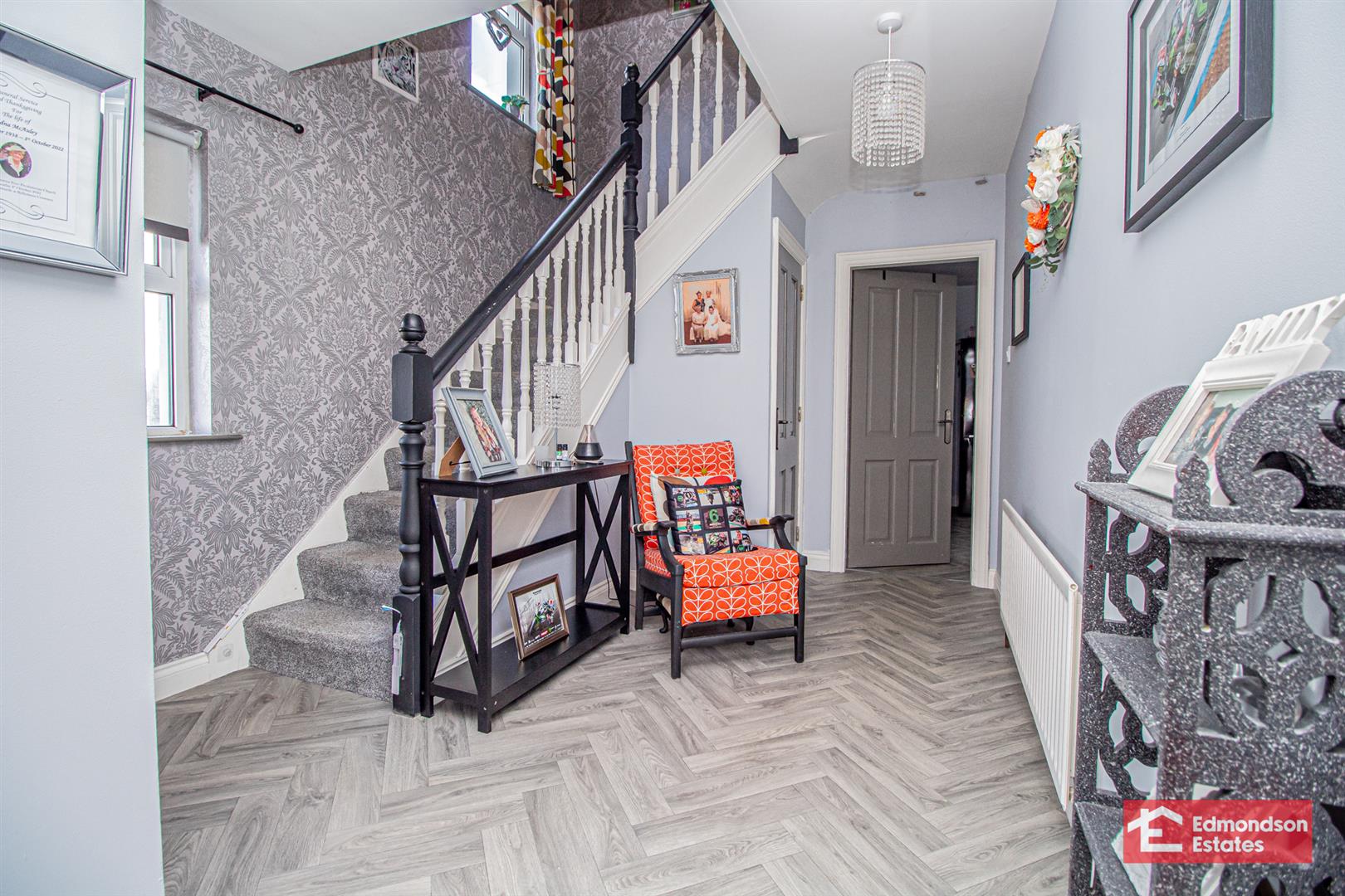 PVC double glazed front door. Stairwell to first floor. Access to under stair store.