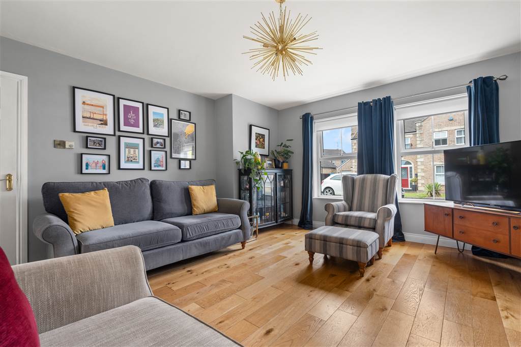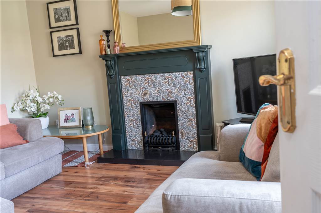 With fire place with tiled inset and hearth, wooden surround and mantle. Laminated wooden flooring.