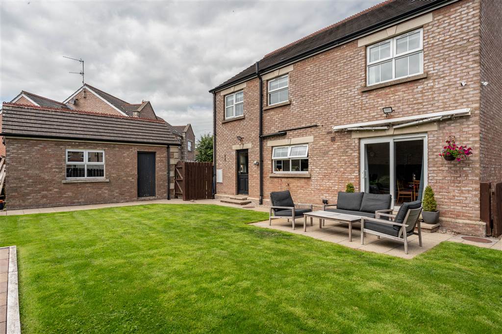 Spacious paved driveway for off street parking. Immaculate gardens to front and rear with planted shrubs. Paved area at rear, ideal for BBQ season. Site bounded by wooden fencing.