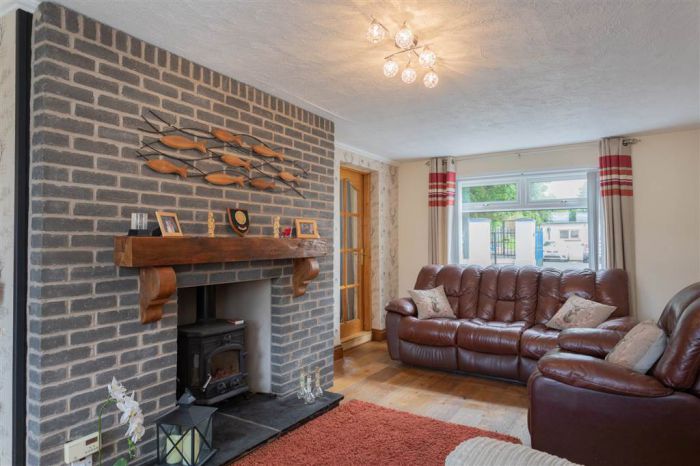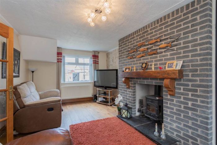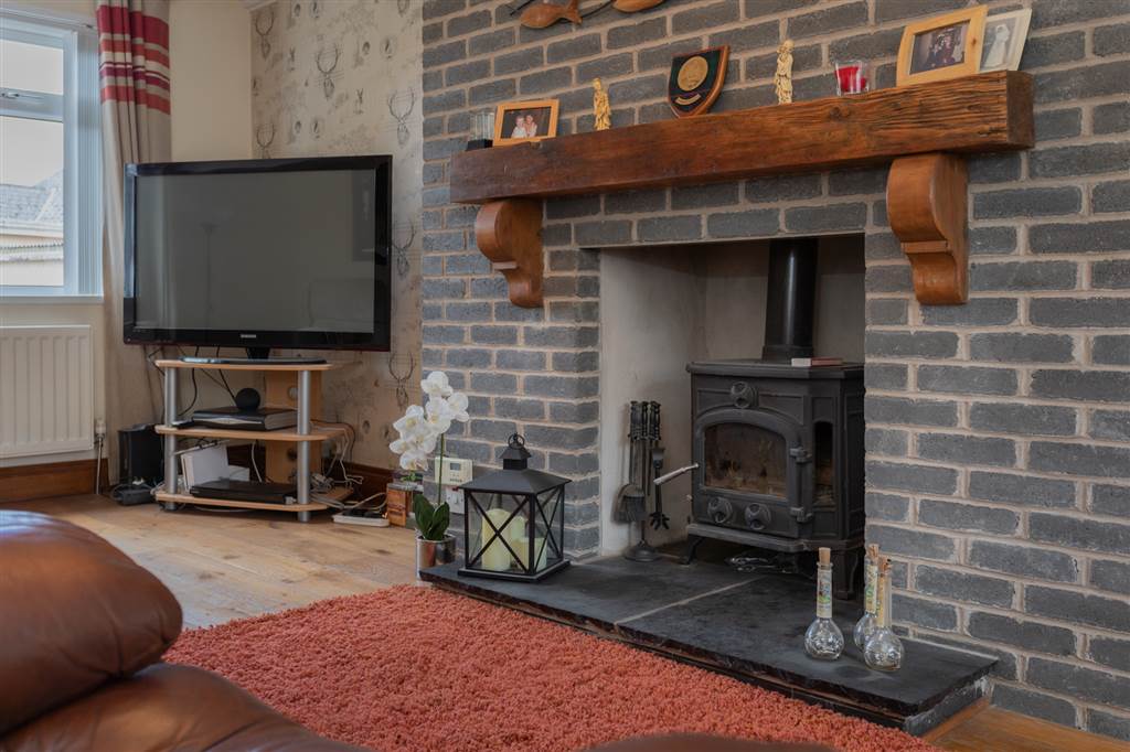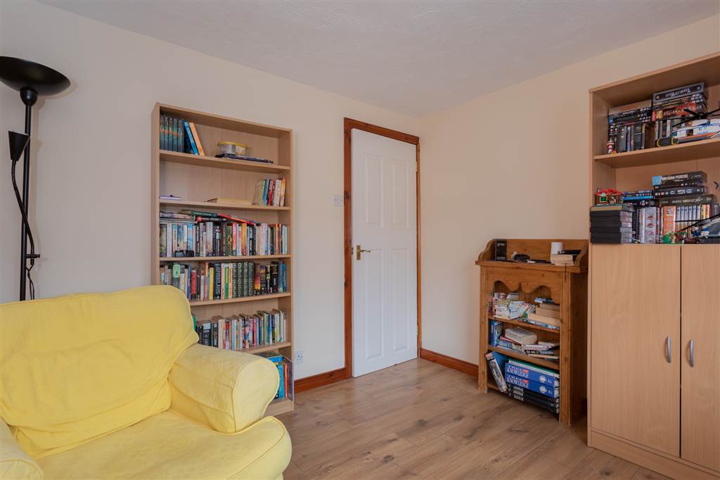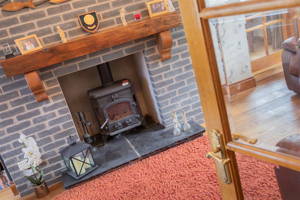 with multi fuel stove with brick fireplace and slate hearth with wooden sleeper. Solid wooden flooring. Glazed door to playroom/reception room or could be used as bedroom.