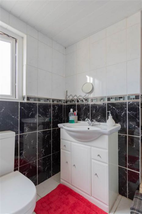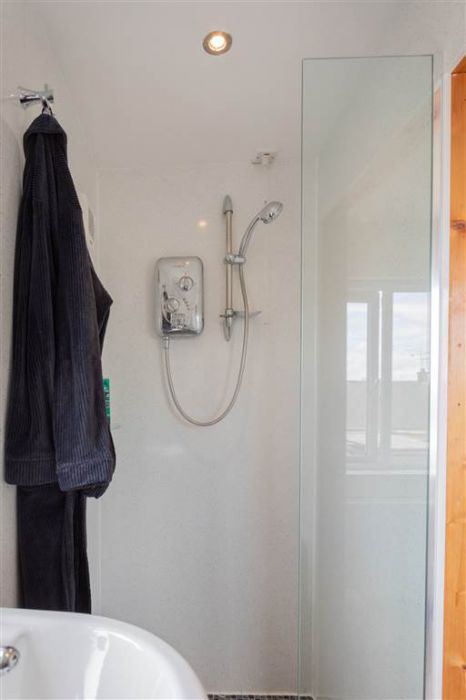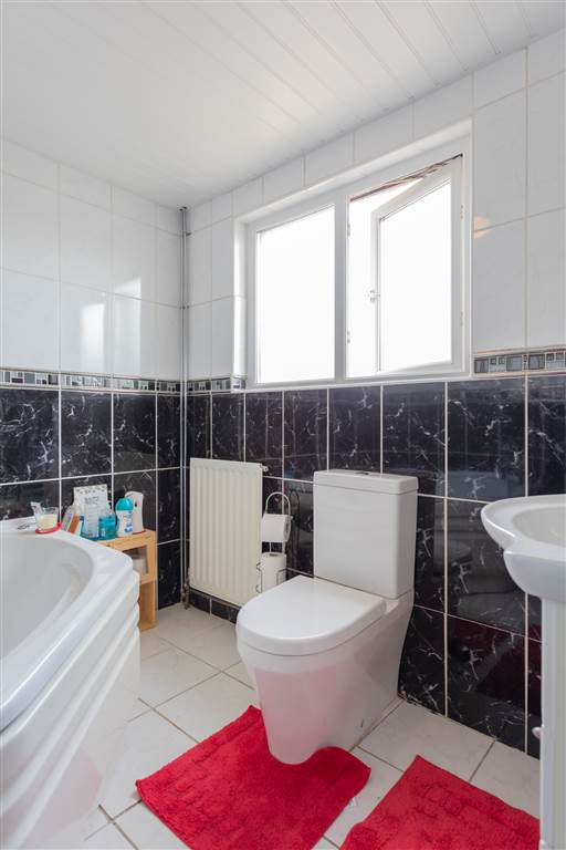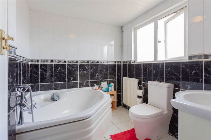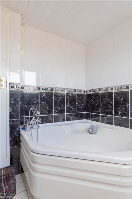 with 4 piece White suite comprising of LFWC, WHB to vanity unit, panelled corner bath with shower attachment over and recently fitted walk in shower to cuibicle. Fully tiled walls and tiled floor.