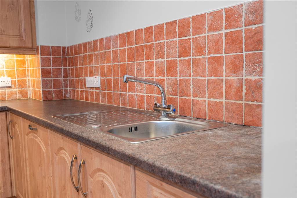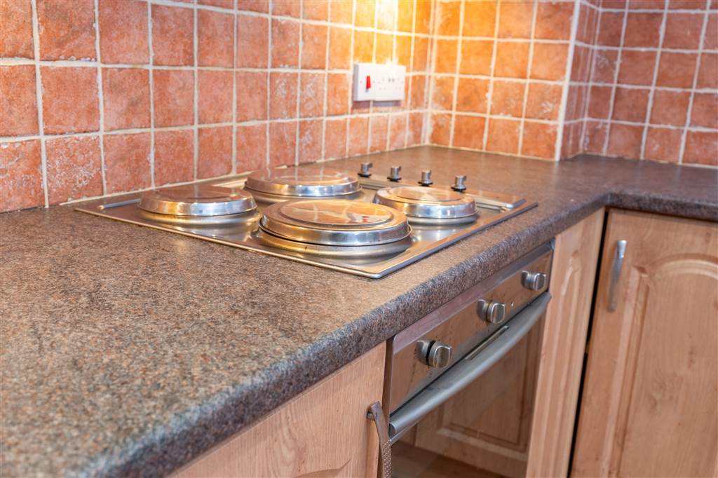 With a range of eye and low-level fitted units, stainless-steel sink unit and drainer with stainless-steel mixer tap. Integrated four ring electric hob and oven with stainless-steel extractor fan over. Integrated fridge-freezer. Integrated dishwasher. Cutlery drawers. Spot lighting to ceiling. Under cabinet lighting. Splash back tiling. Tiled flooring.