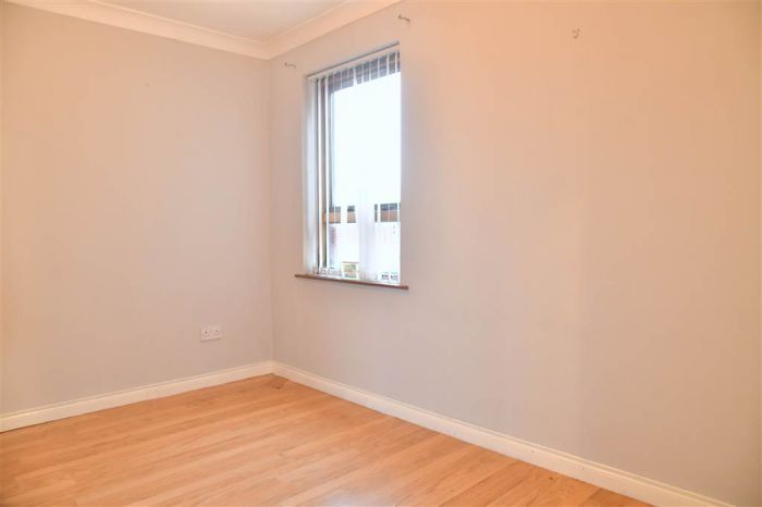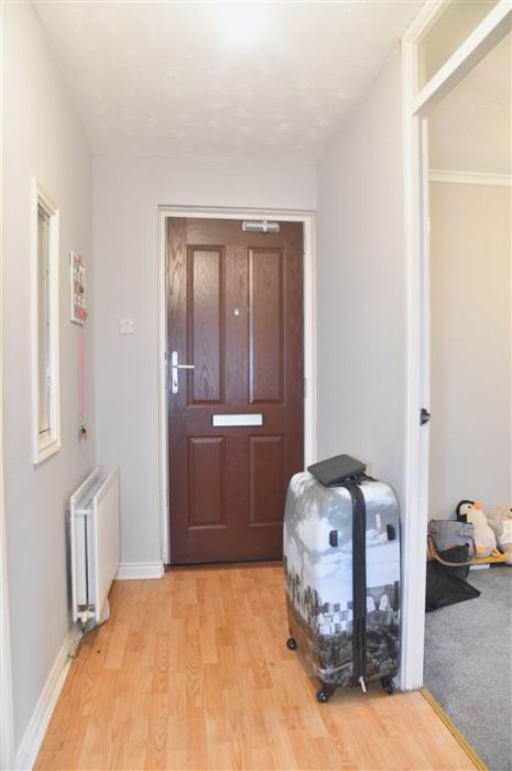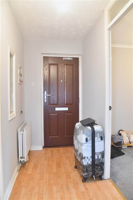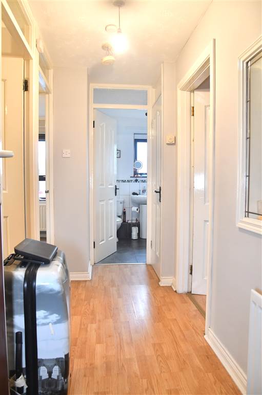 PVC front door. Hot-press with shelved storage. Laminated wooden flooring.