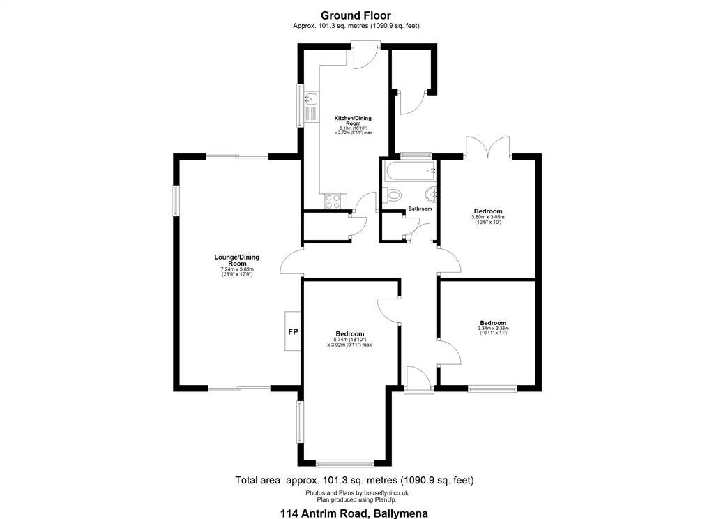Total area: approx. 101.3 sq. metres (1090.9 sq. feet)