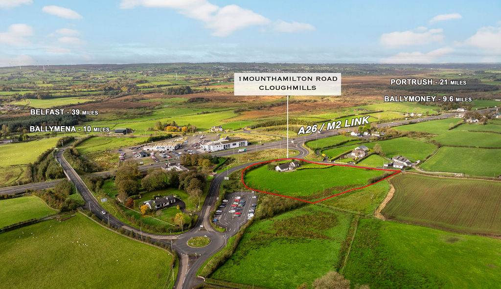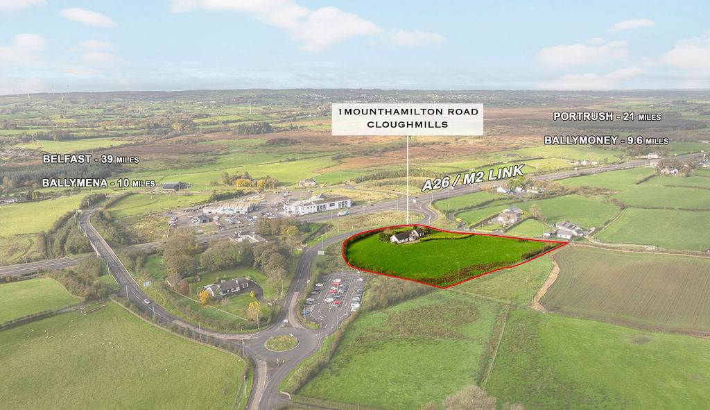 Homes Independent are thrilled to present to the market 1 Mount Hamilton Road, Cloughmills. The location of this property truly offers the best of both worlds â private and peaceful surroundings while being extremely convenient to the A26 and M2, making it ideal for commuters. This impressive detached bungalow offers spacious and versatile accommodation comprising three bedrooms, including one with en-suite shower room, two generous reception rooms, a kitchen/dining area, utility room, shower room and family bathroom. Externally, the property features an integral double garage, gardens laid in lawn, a paved driveway providing ample parking and a paved patio area perfect for outdoor entertaining. Adding to its appeal, the sale also includes approximately 2.22 acres of land situated to the front of the property â a fantastic opportunity for those seeking space and privacy. Homes Independent highly recommend early viewing to fully appreciate all that this outstanding home and its surroundings have to offer. Contact the selling agent today to arrange your viewing.
