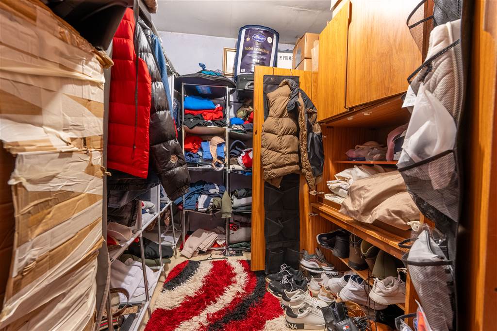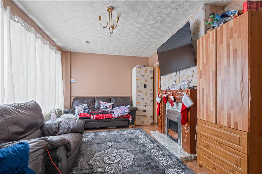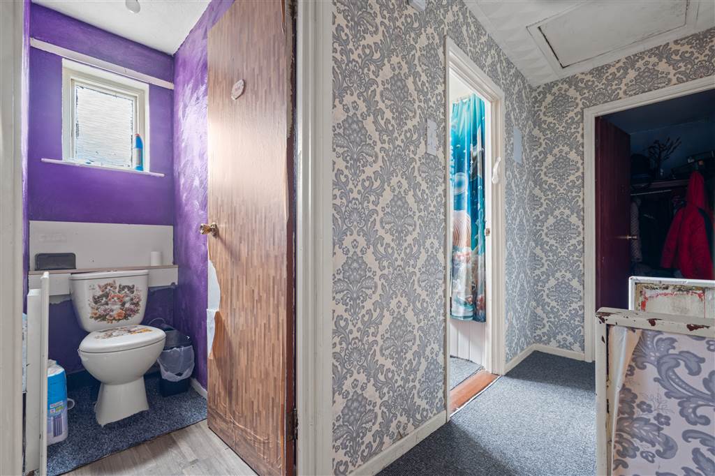 With staircase to first floor. Built-in storage cupboard. Wooden panelling to walls.