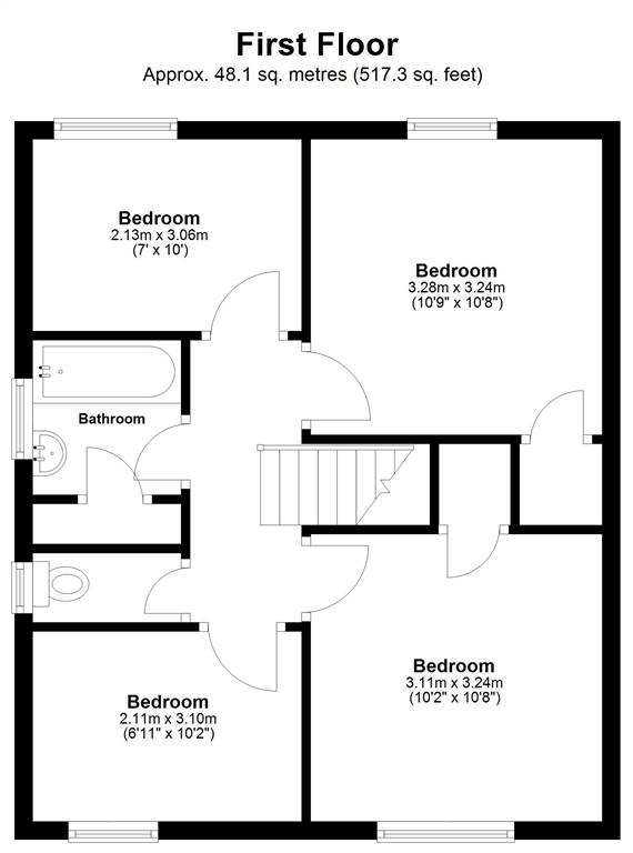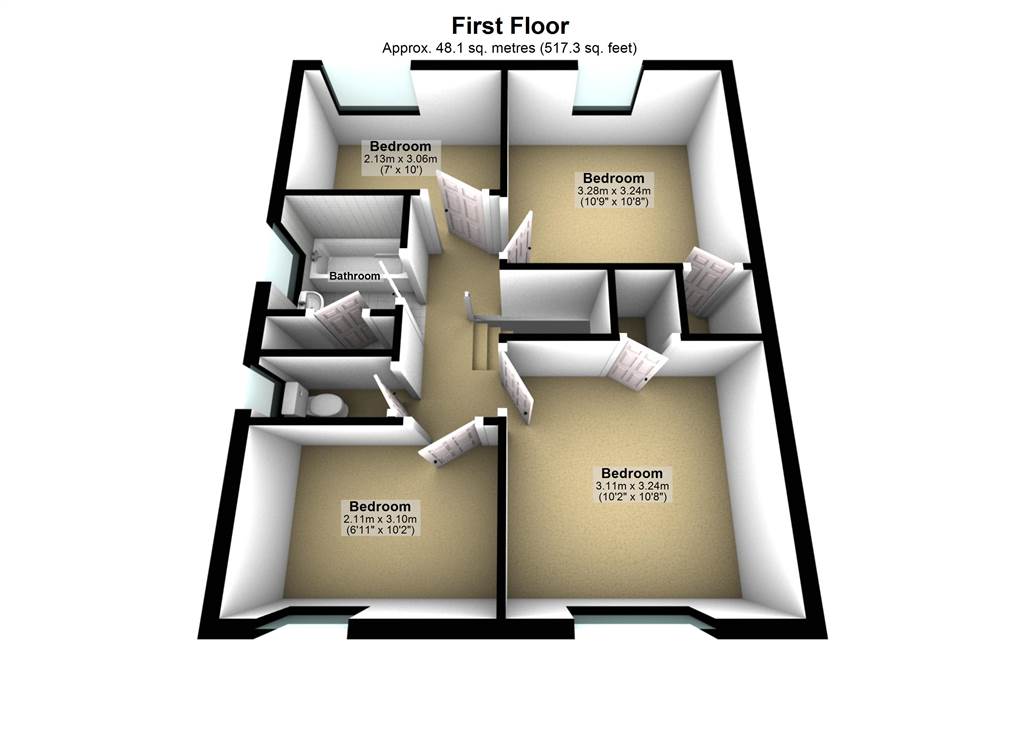 BEDROOM (3): 10' 2" X 6' 11" (3.10m X 2.11m)