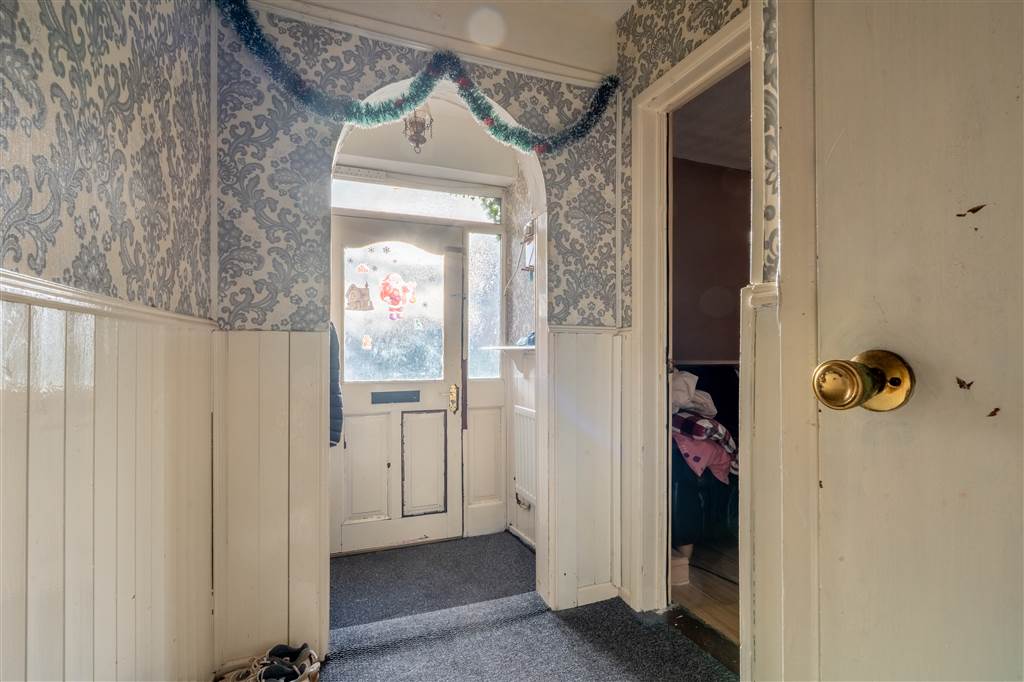 With hardwood front door with glazed surround. Wooden panelling to walls. Archway to entrance hallway.