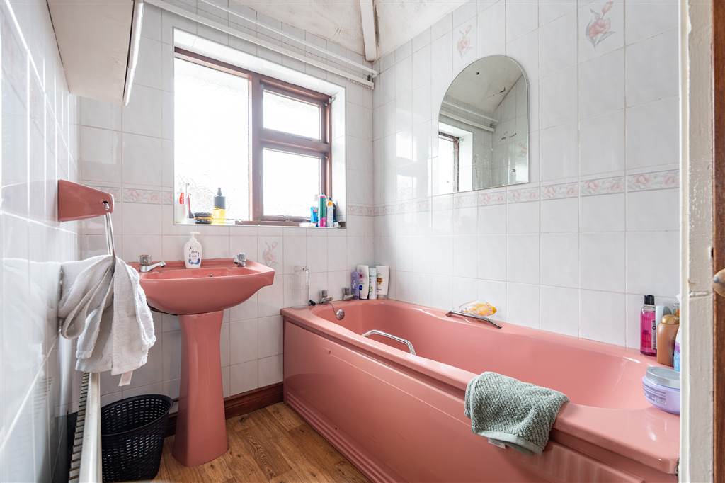 With WHB and panelled bath. Hot-press. Tiled walls.