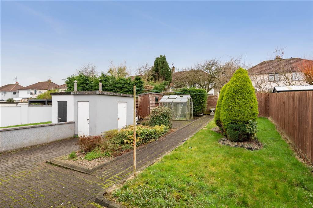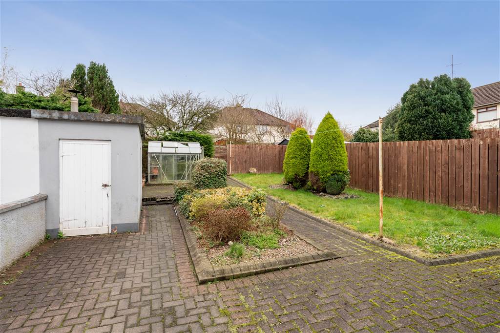 With paved driveway for off-street parking. Garden in lawn to front of property with decorative pebbled area and planted shrubs. Enclosed rear bounded by wooden fencing and gate. Paved patio area to rear. Garden in lawn to rear. Decorative pebbled area with planted shrubs. Outhouse with plumbing for washing machine.