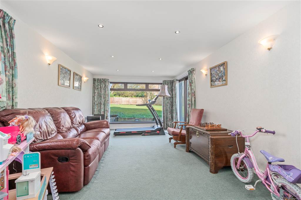 With wall lights. Spot lighting to ceiling. PVC double glazed sliding doors to rear.
