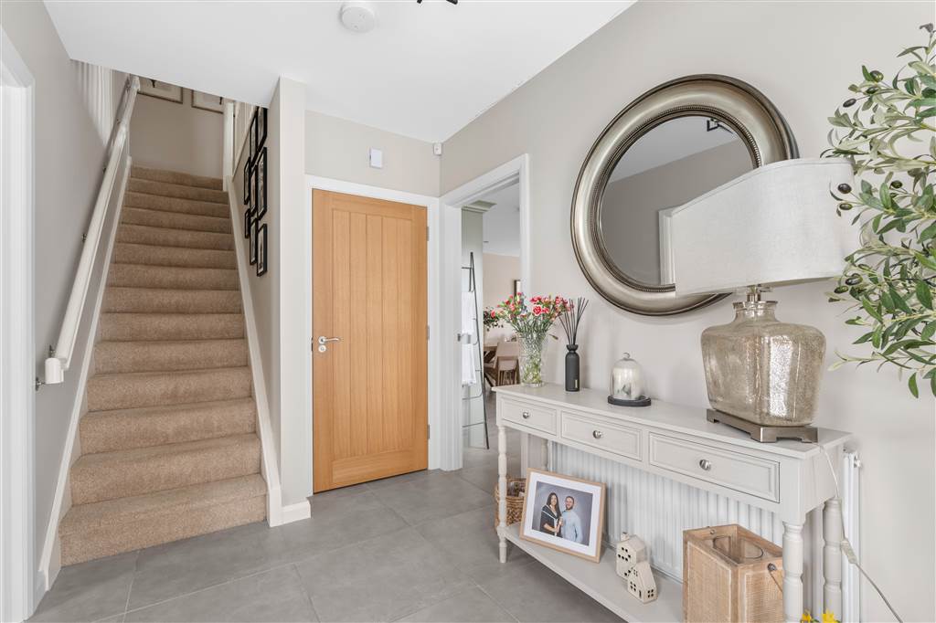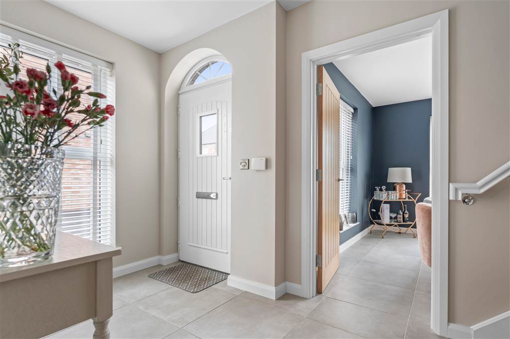 With composite front door with glazed pane. Staircase to first floor. Tiled flooring.