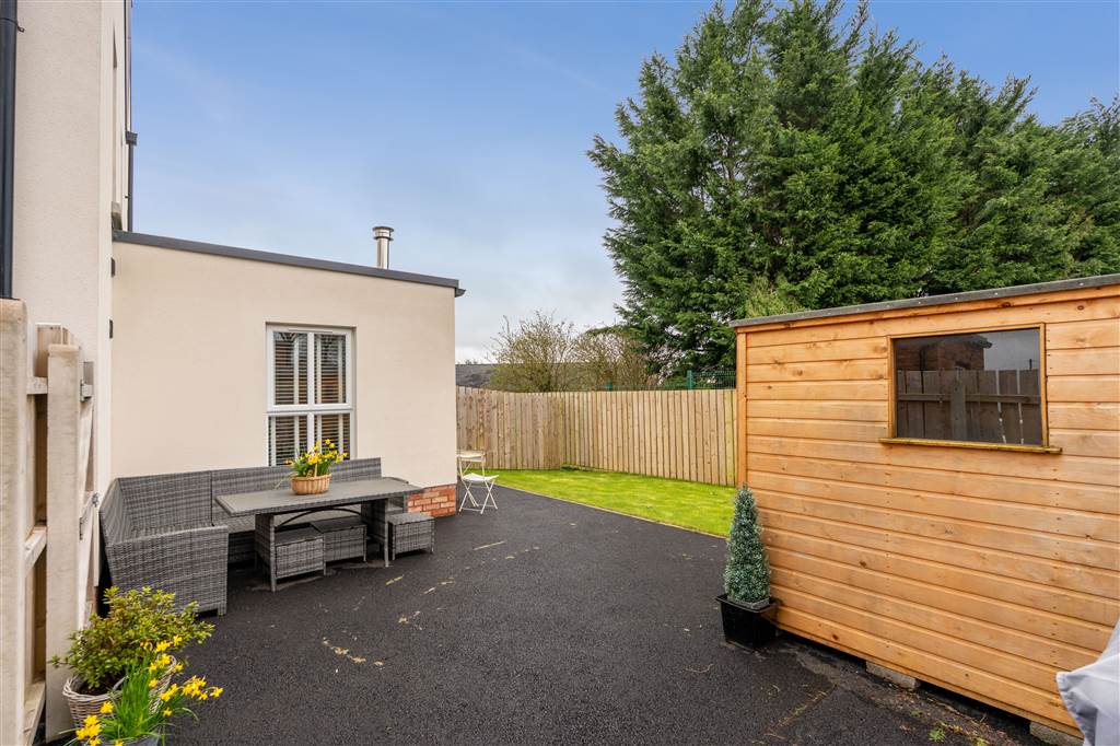 With spacious tarmac drive at front of property for parking. Garden in lawn to front. Enclosed rear bounded by wooden fencing and gate. Garden in lawn to rear. Tarmac area to rear. Wooden shed. Outside tap. Outside lights.