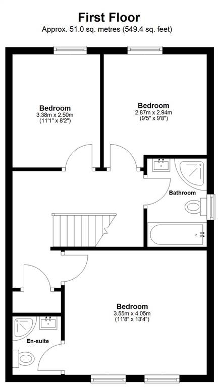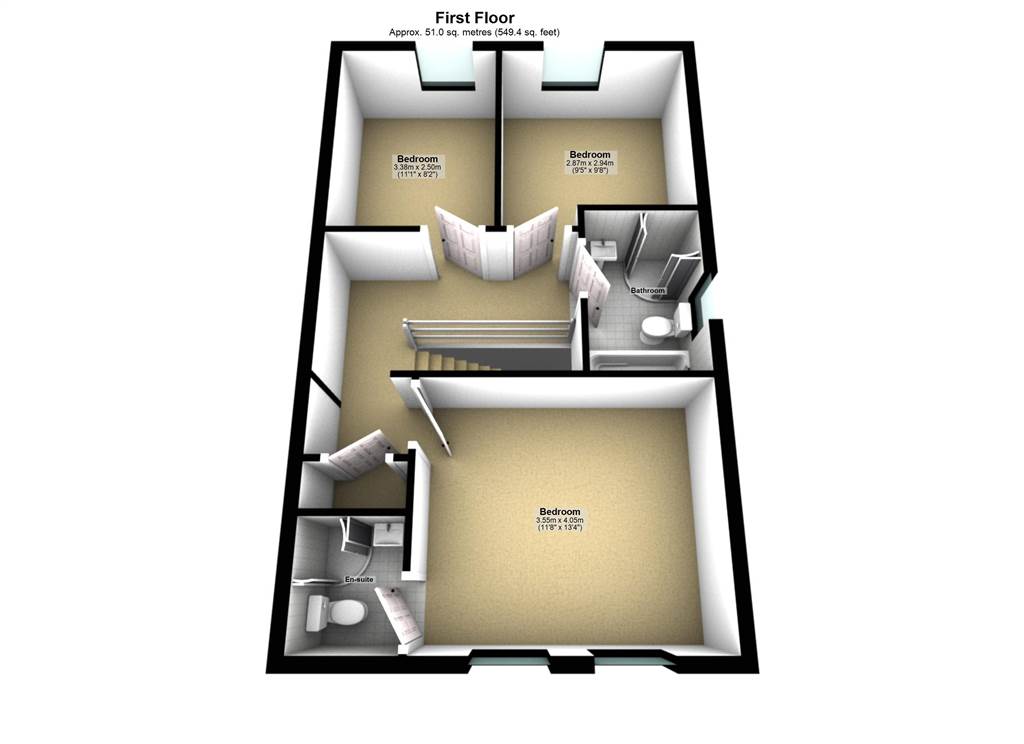 BEDROOM (3): 11' 1" X 8' 2" (3.38m X 2.50m)