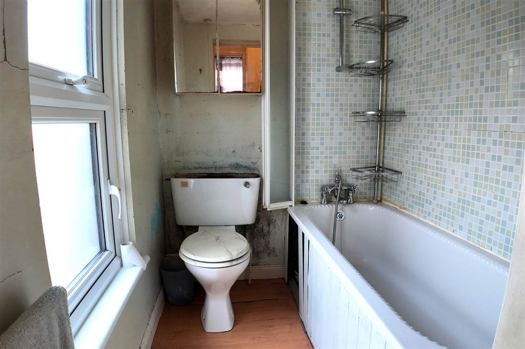 With 3-piece white suite comprising LFWC, WHB and panelled bath.