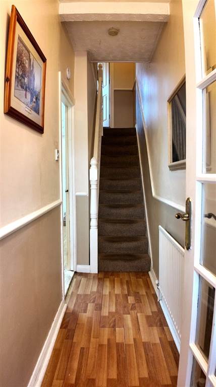 With staircase to first floor. Laminated wooden flooring.