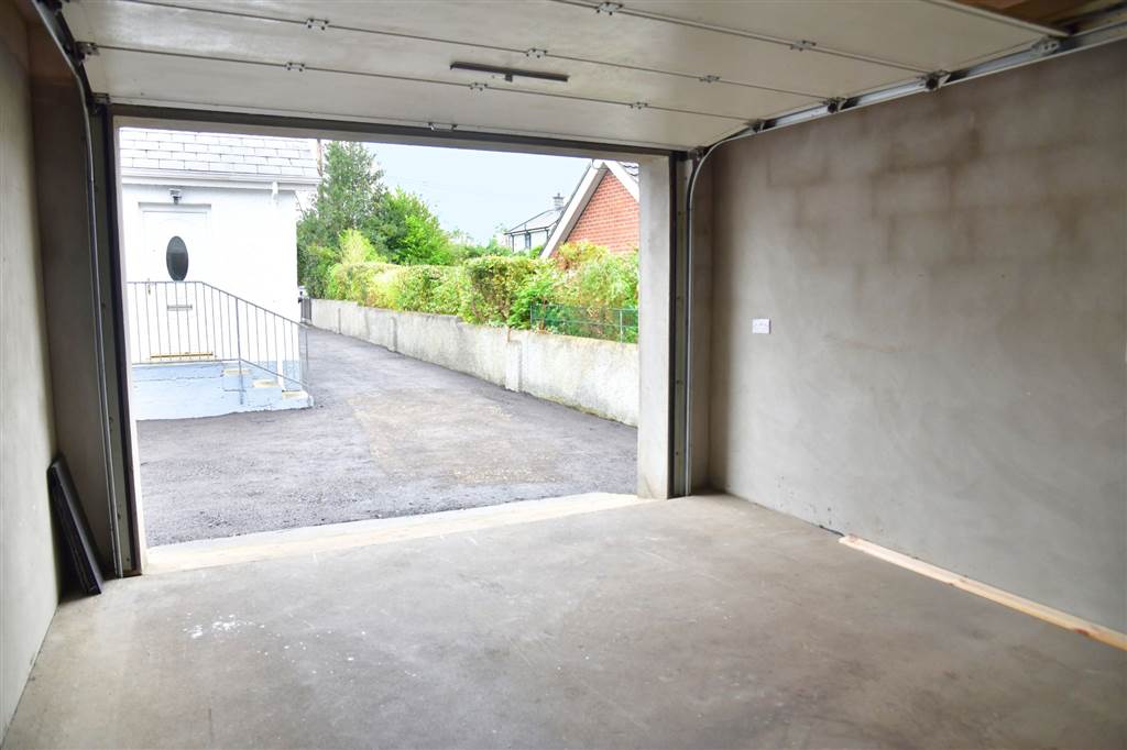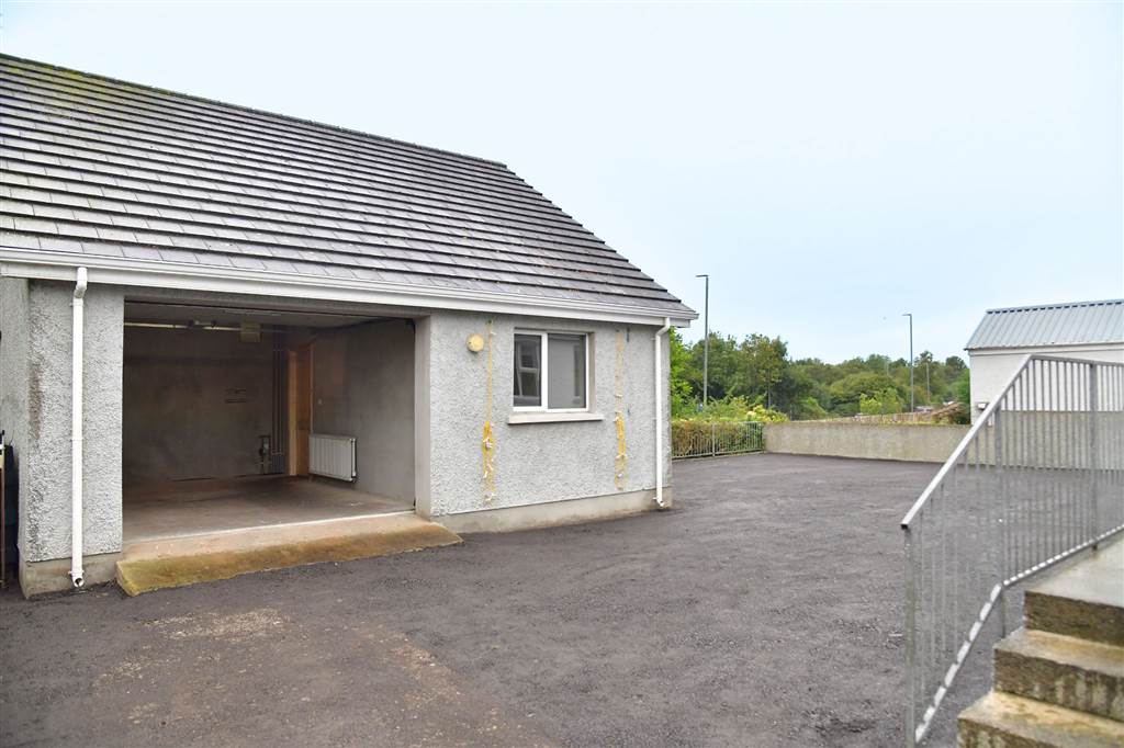 With spacious area to front, side and rear of property for ample parking. Decorative pebbled area at front of property with planted shrubs. Enclosed garden in lawn to rear with planted shrubs and hedging, bounded by wall, railing and wooden gate. Outside lights. Outside tap.