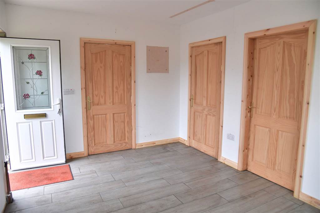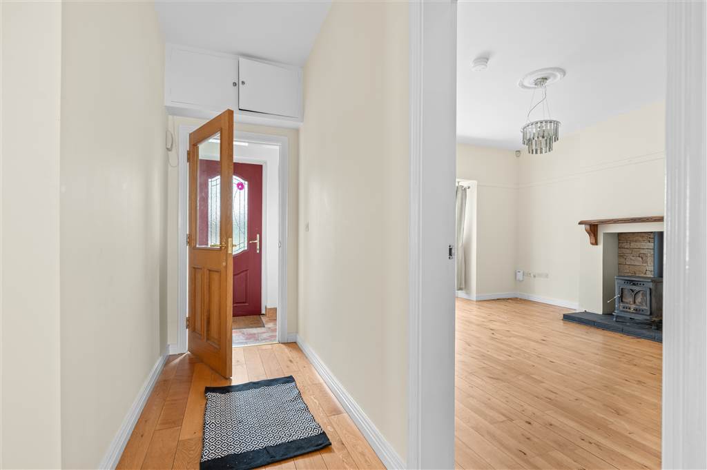 With composite front door with decorative glazed pane. Tiled flooring. Glazed door to entrance hallway.