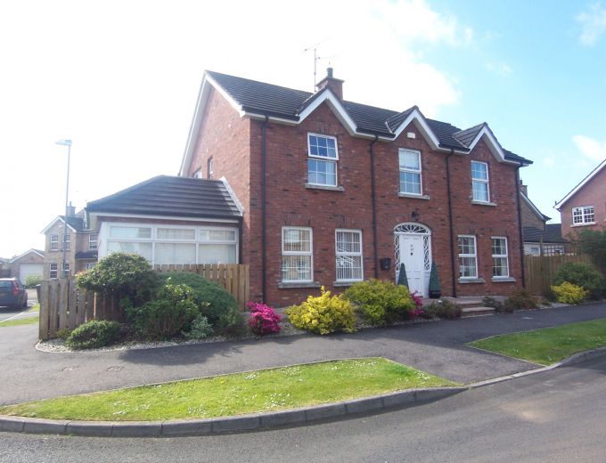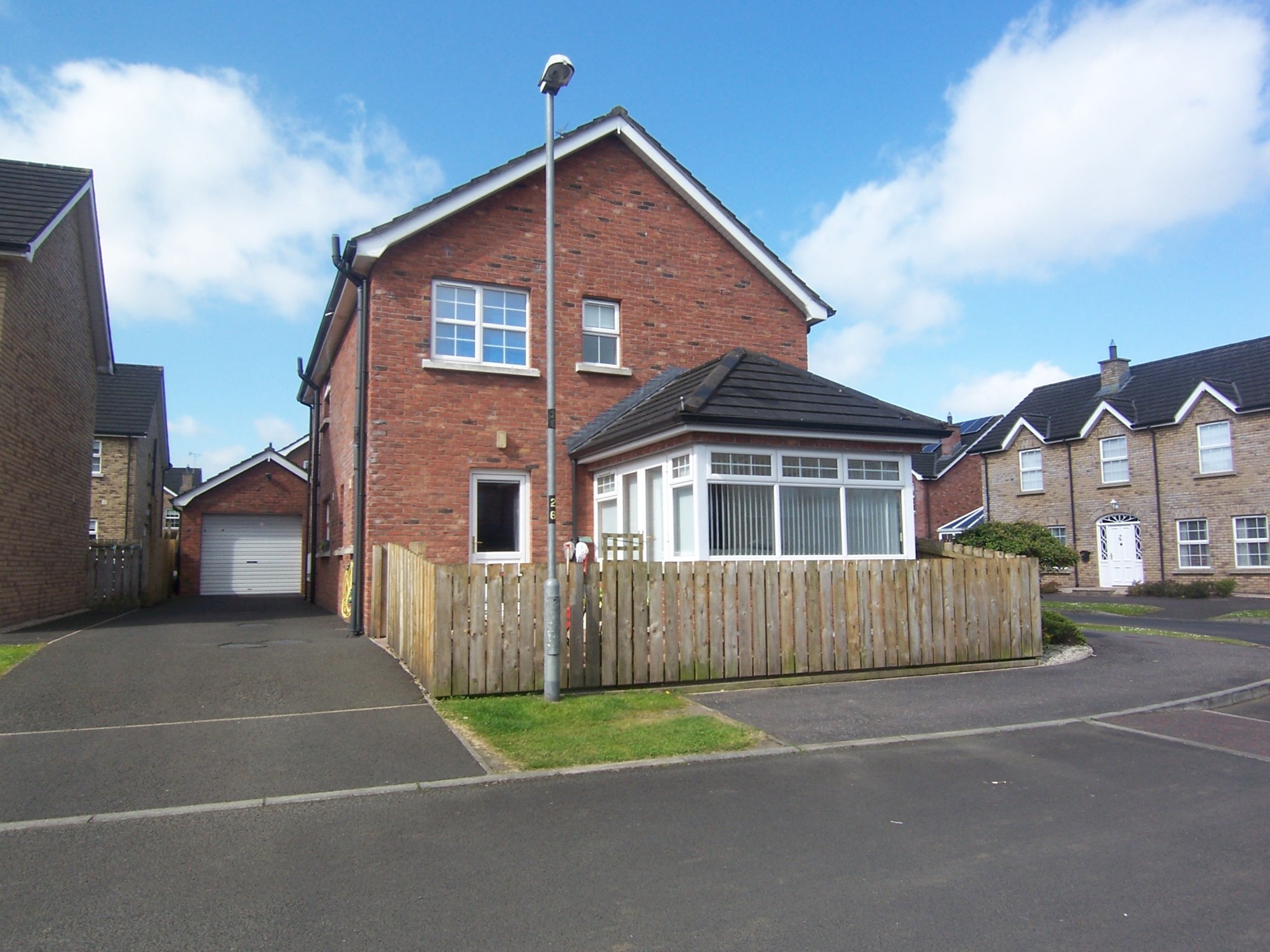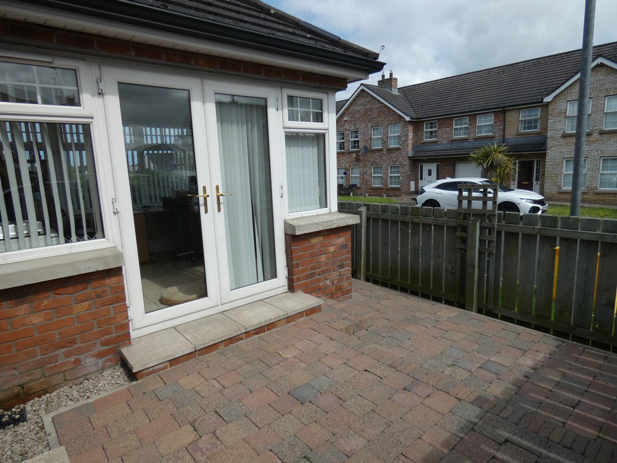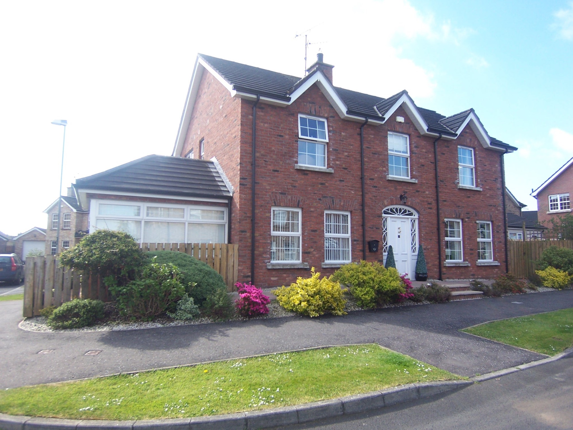 The front and side are bordered by pavia paths and patio areas with mature colour stone shrub beds.