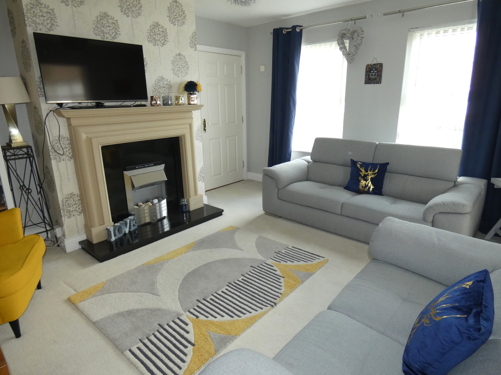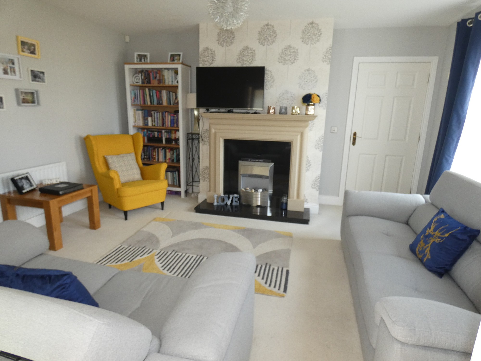 Attractive granite fireplace, stone effect surround, electric fire, T.V. point, telephone point and patio doors to the sun room.