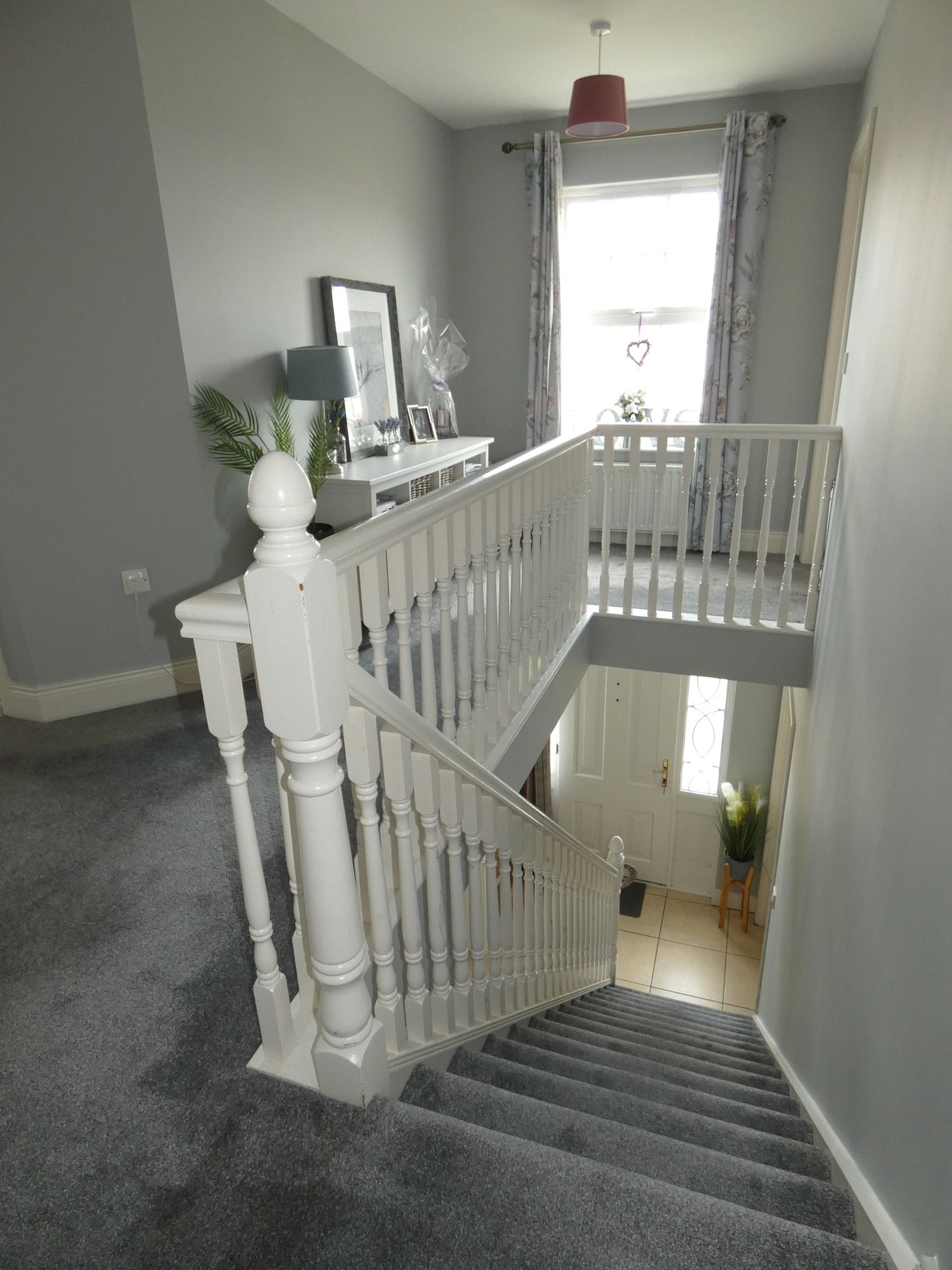 With a shelved airing cupboard and a slingsby fold down wooden ladder hatch to the attic:- partly floored with a light.