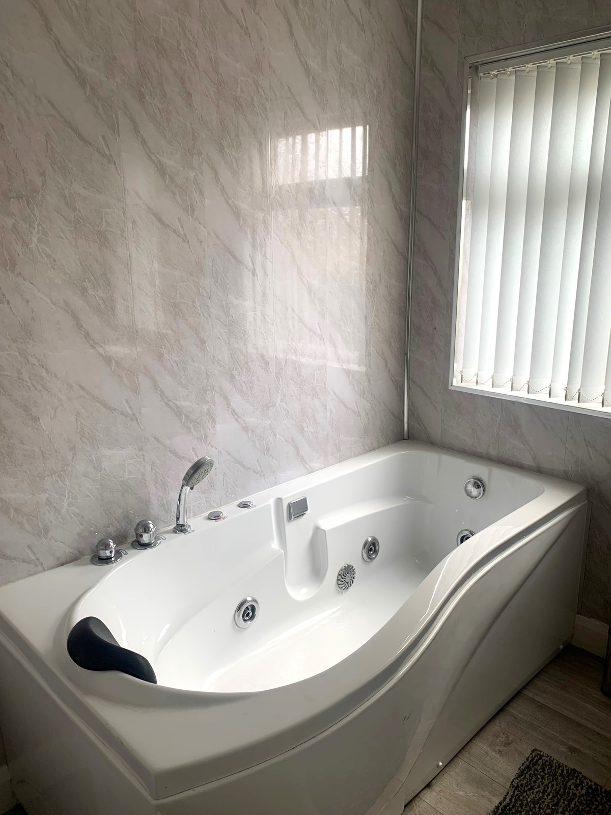 Luxury family bathroom with a feature jacuzzi bath.