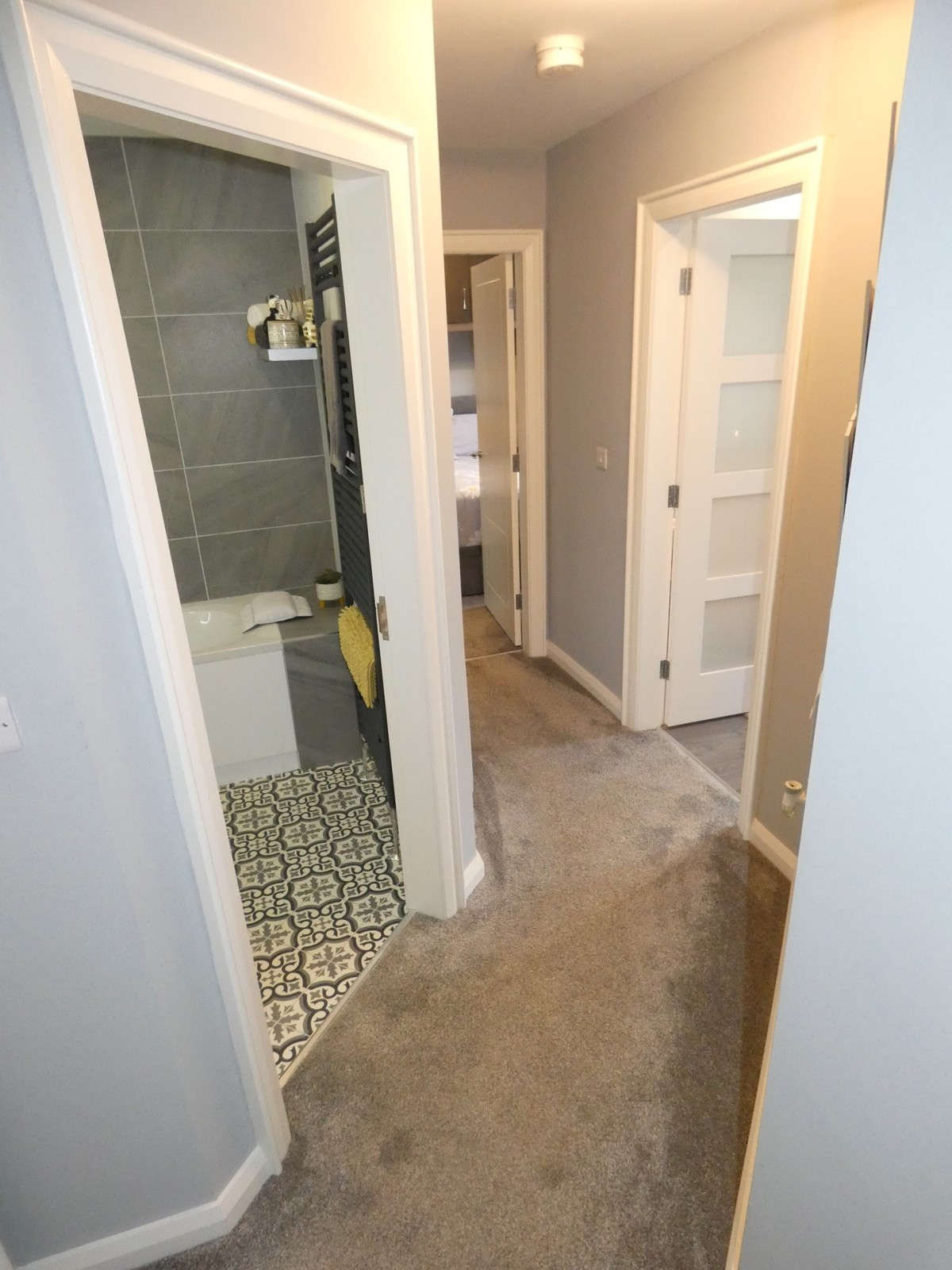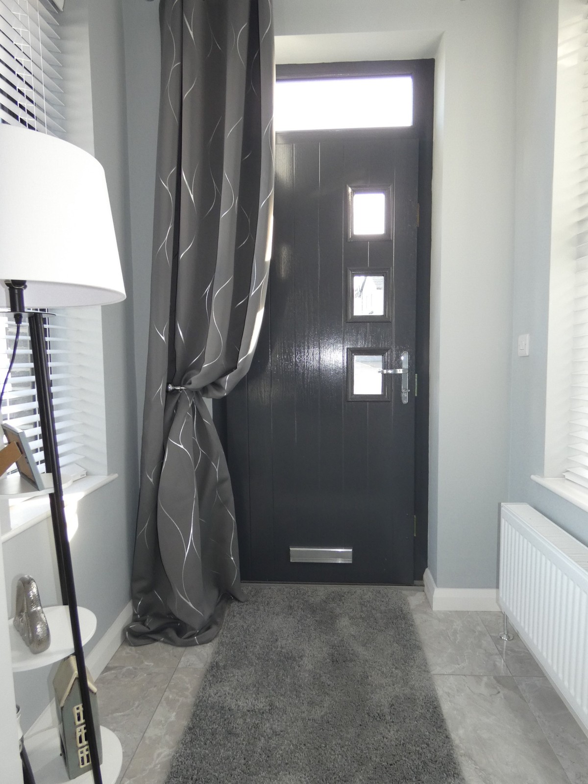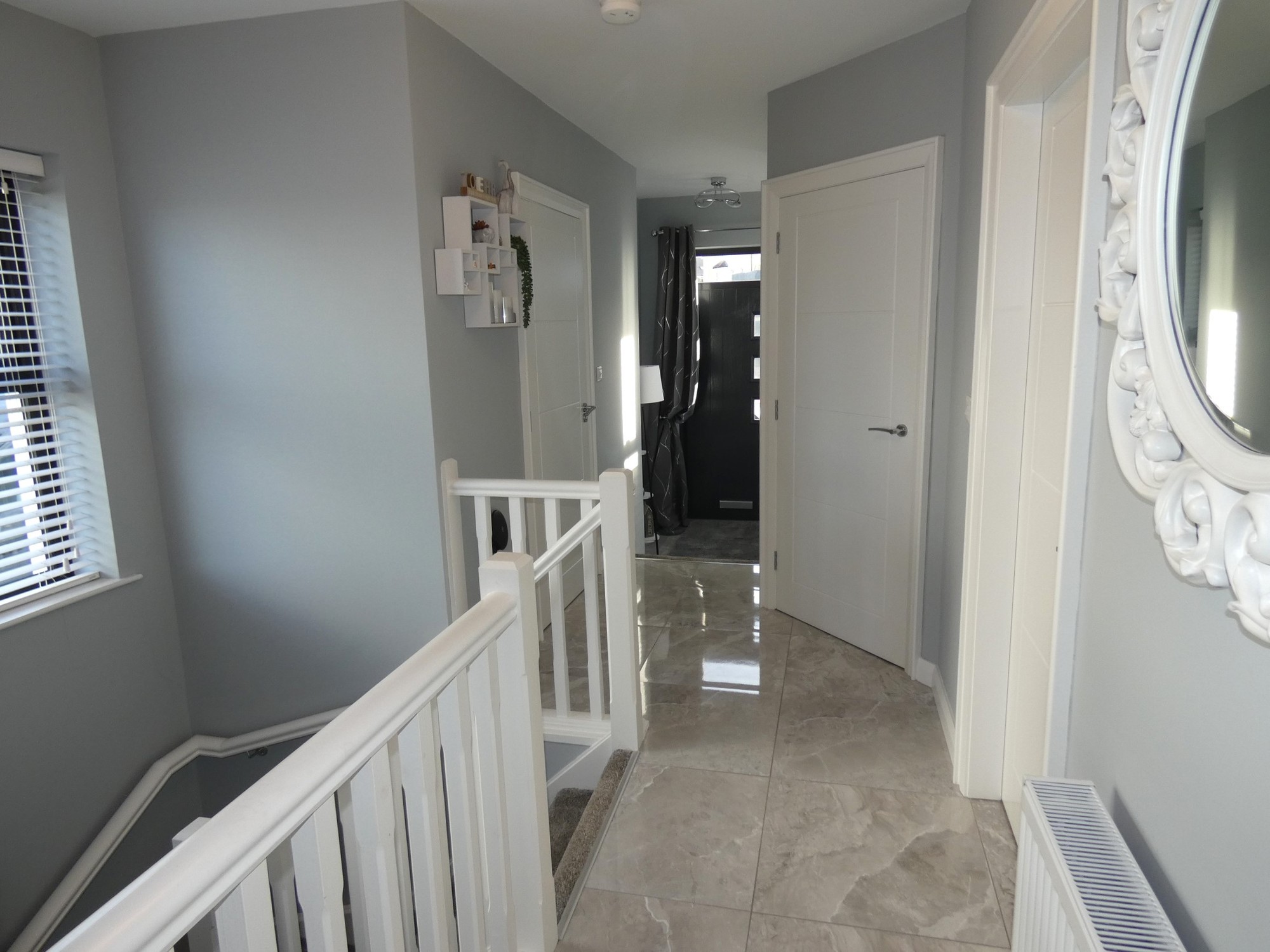 Attractive partly glazed composite front door, attractive tiled flooring, cloaks cupboard and a separate shower room.