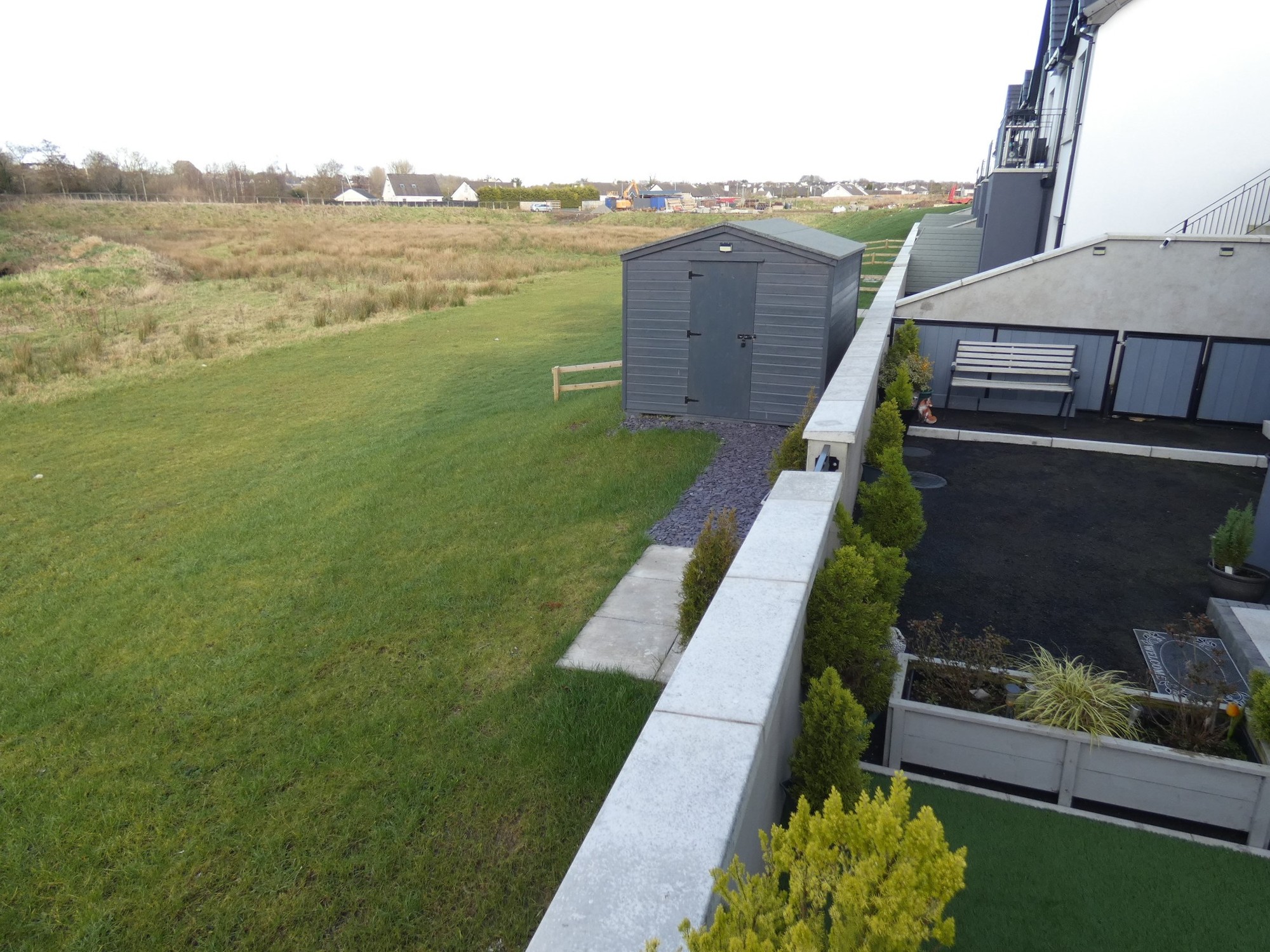It"s mostly laid in tarmac with an artificial grass area and a low level boundary wall.