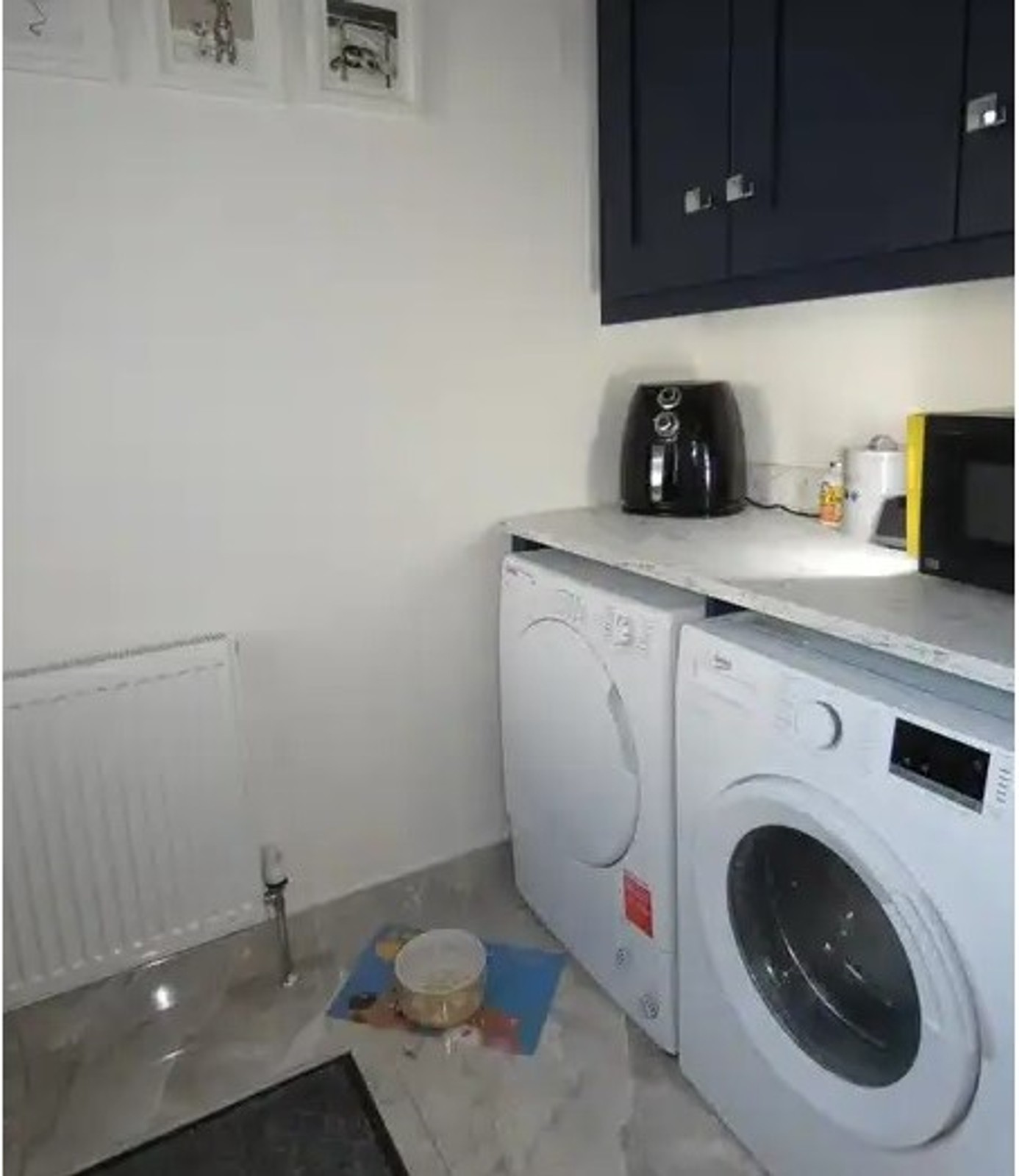 Fitted eye level units, plumbed for an automatic washing machine, space for a tumble dryer, extractor fan, recessed ceiling lights, attractive tiled flooring and a door to the rear.