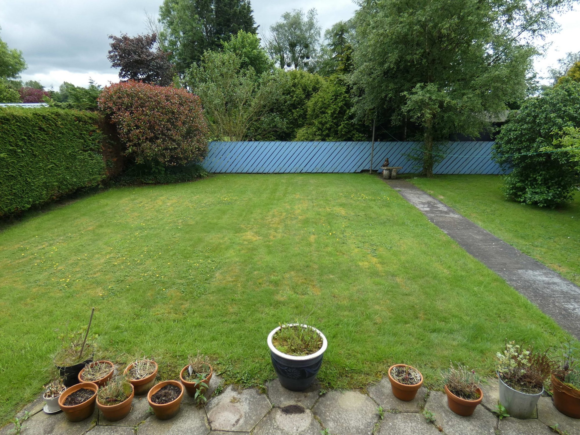 The private rear garden in fully enclosed with hedge and fence boundaries.