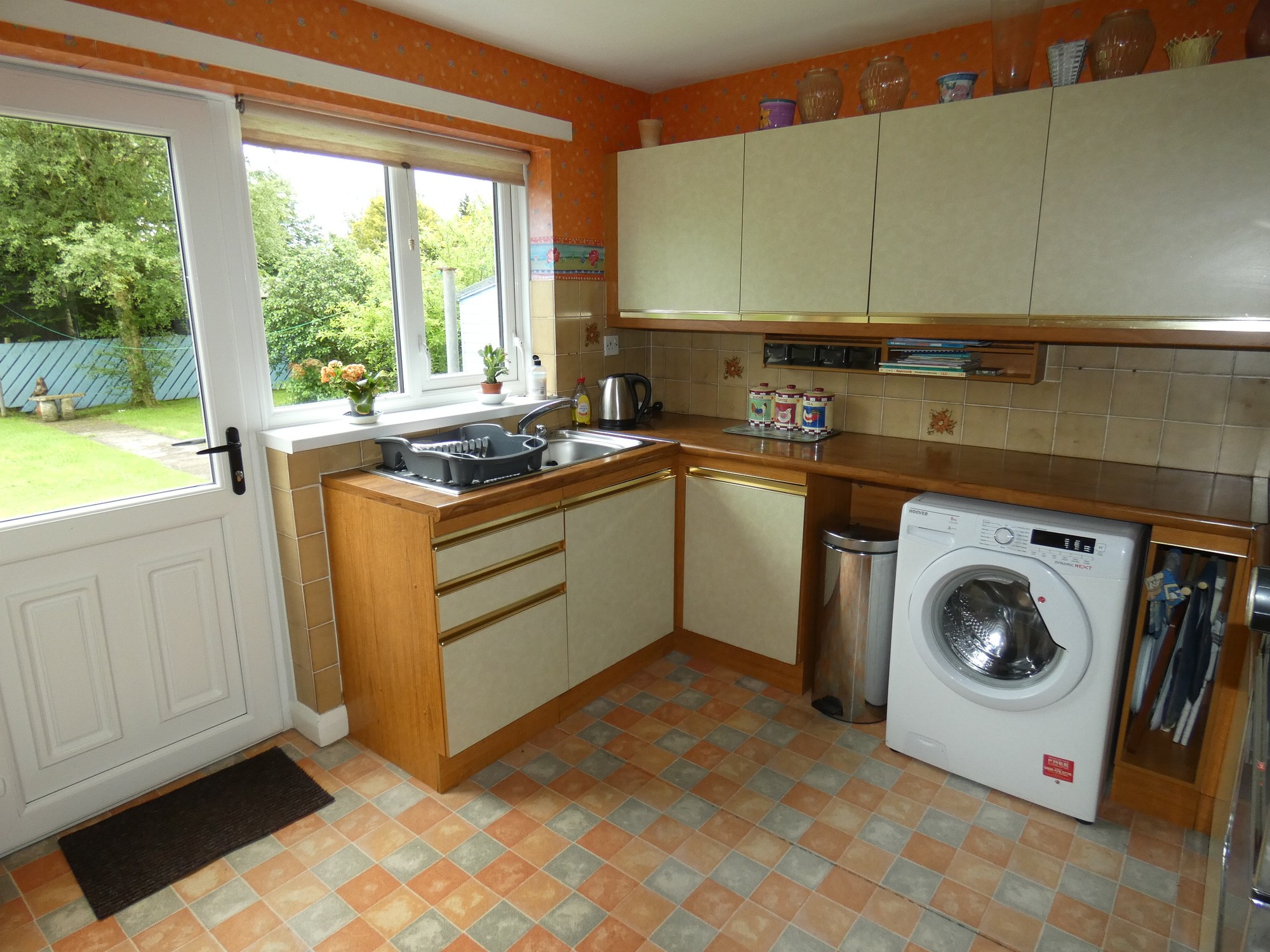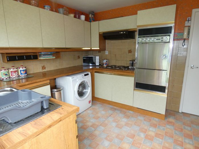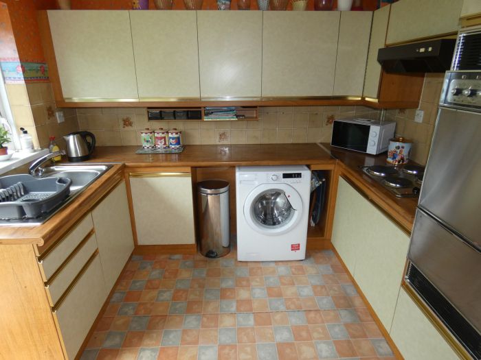With a range of fitted aye and low level units, stainless steel sink, electric hob with an extractor fan over, eye level oven, plumbed for an automatic washing machine and a partly glazed Upvc door to the rear.