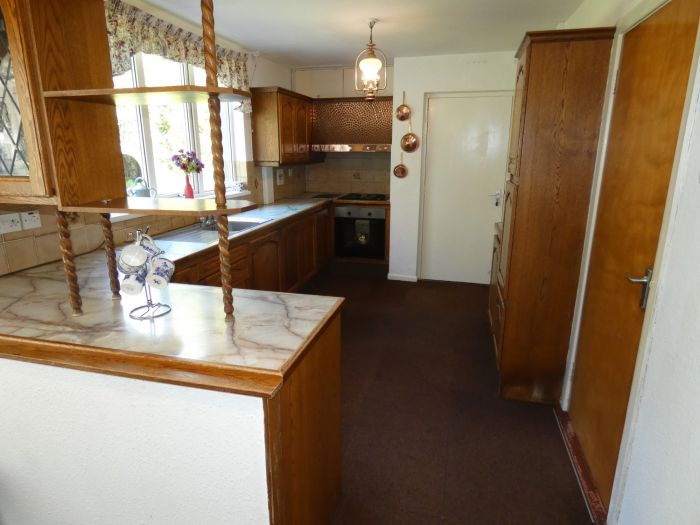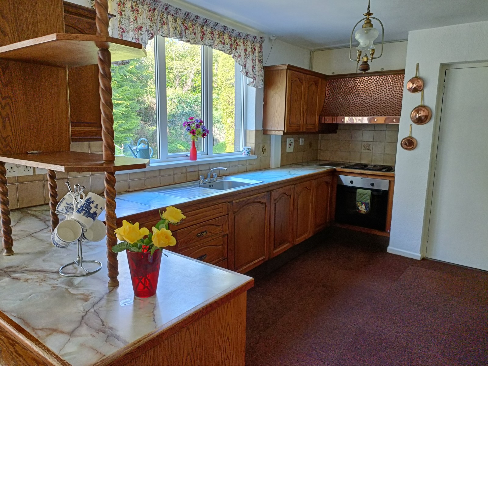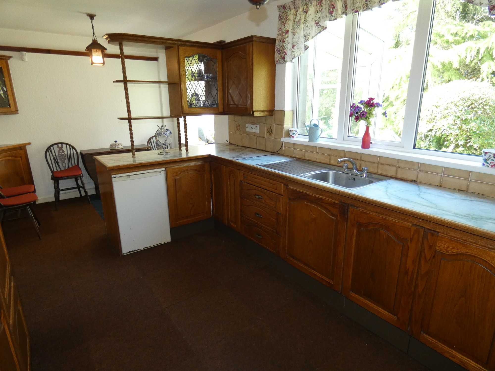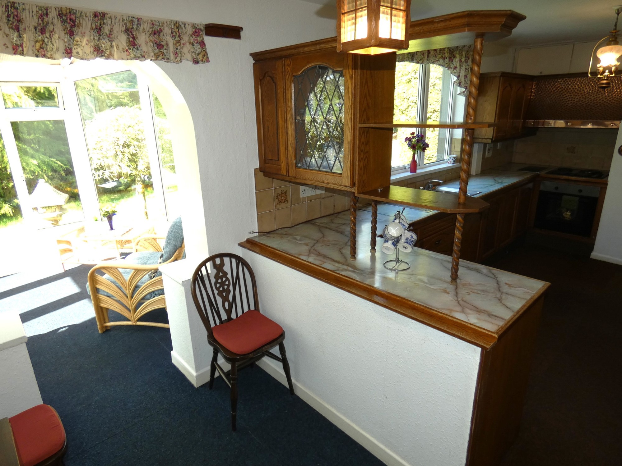 The spacious kitchen/dinette is open plan to the conservatory and overlooking the rustic bridge with a quaint waterfall.