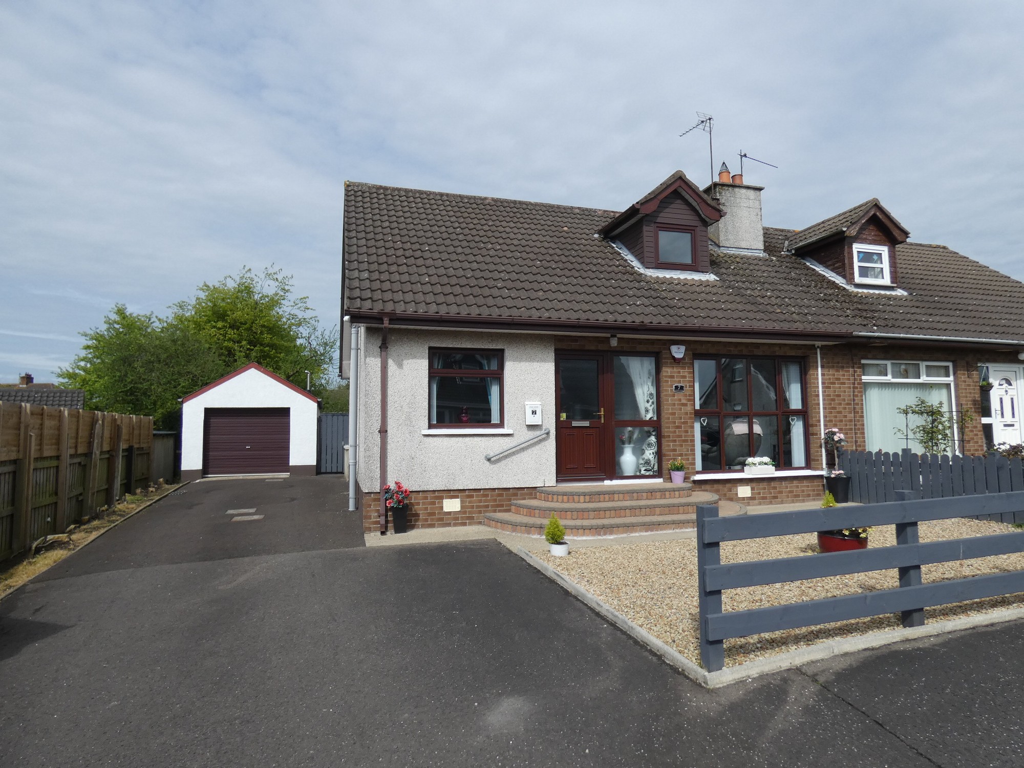 The southerly orientated rear garden area has been recently landscaped including a new fence, all new tarmac and attractive pavia steps to the back door.