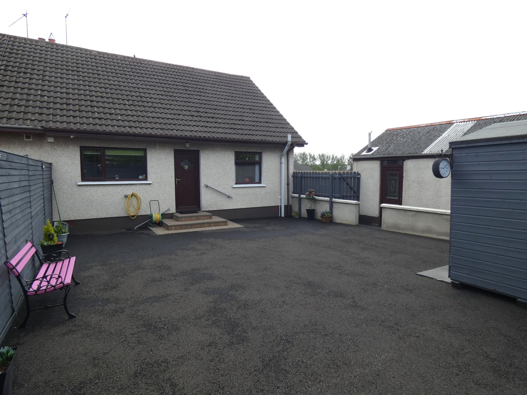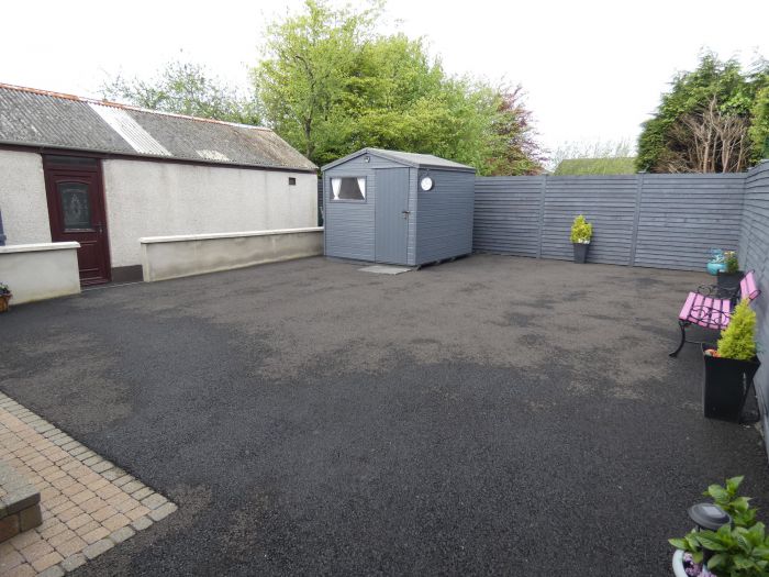 The rear is totally enclosed with a new fence and hard landscaped in tarmac.