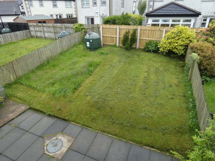 The rear garden area is fully enclosed with a spacious patio area and the garden laid in lawn.