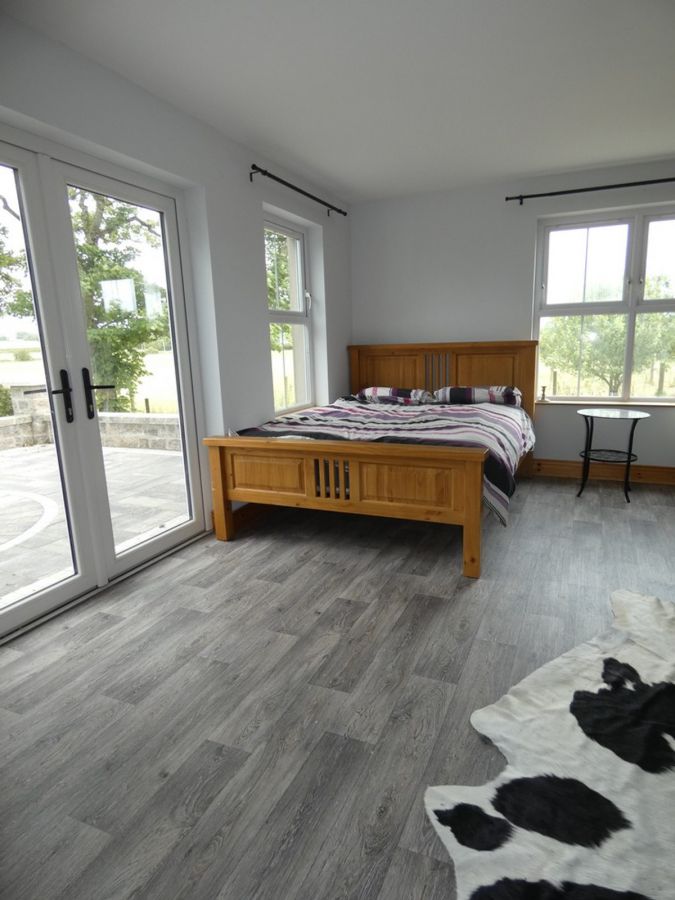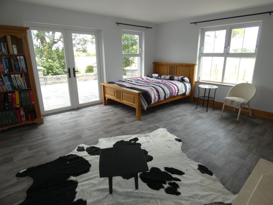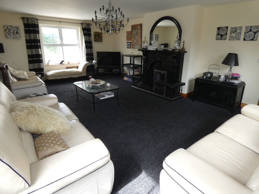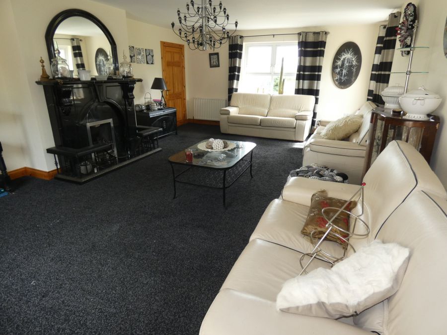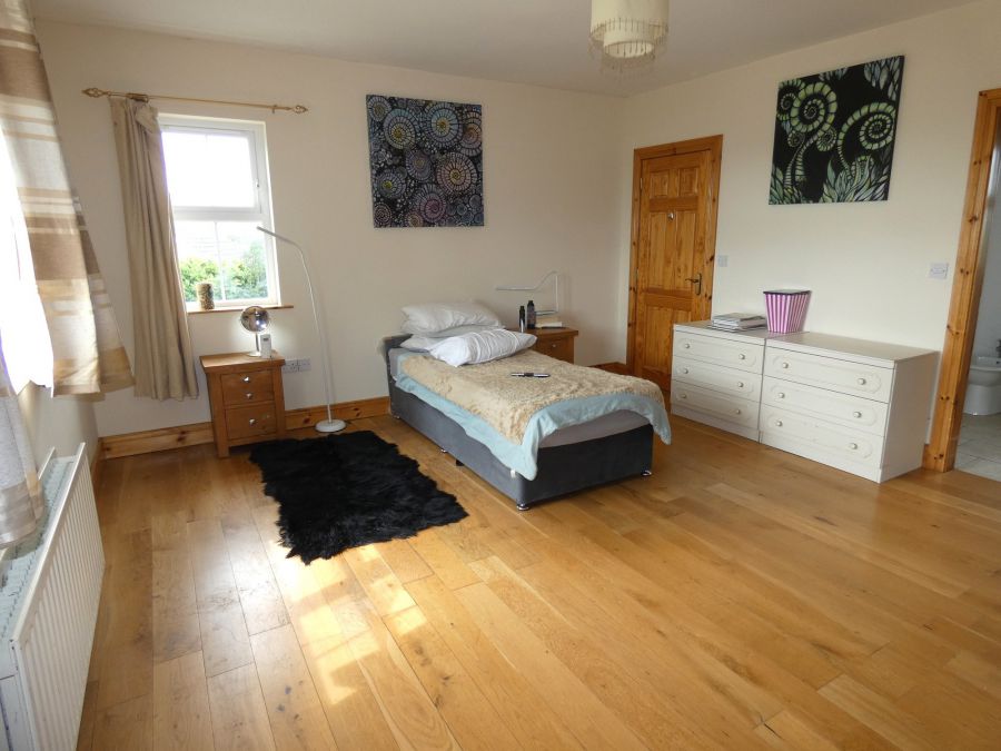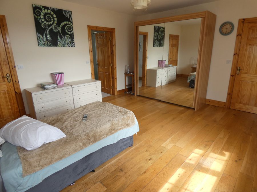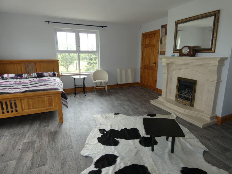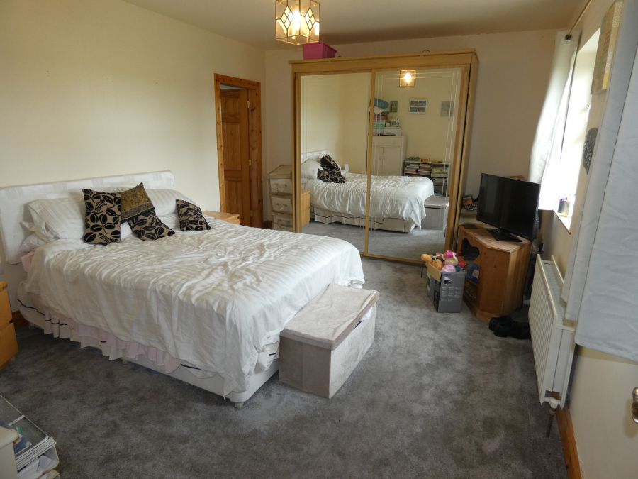 A delightful double aspect room with views over the countryside towards the Glens of Antrim and Knocklayde Mountain. The same includes a fitted marble fireplace, French doors to a recently installed patio (overlooking the surrounding countryside), TV points and a feature barn style door to a large ensuite wet room ( 11"2 x 7"9 ) suitable for anyone elderly. Including a w.c, a vanity unit with storage below, tiled walls, a contemporary wall mounted radiator, recessed ceiling spotlights and a wall mounted mixer shower.