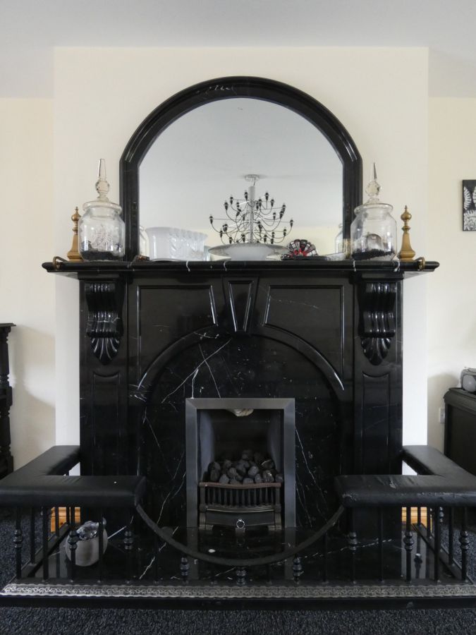A super triple aspect room overlooking the mature exterior gardens, TV point and the feature marble fireplace with a matching overmantle.