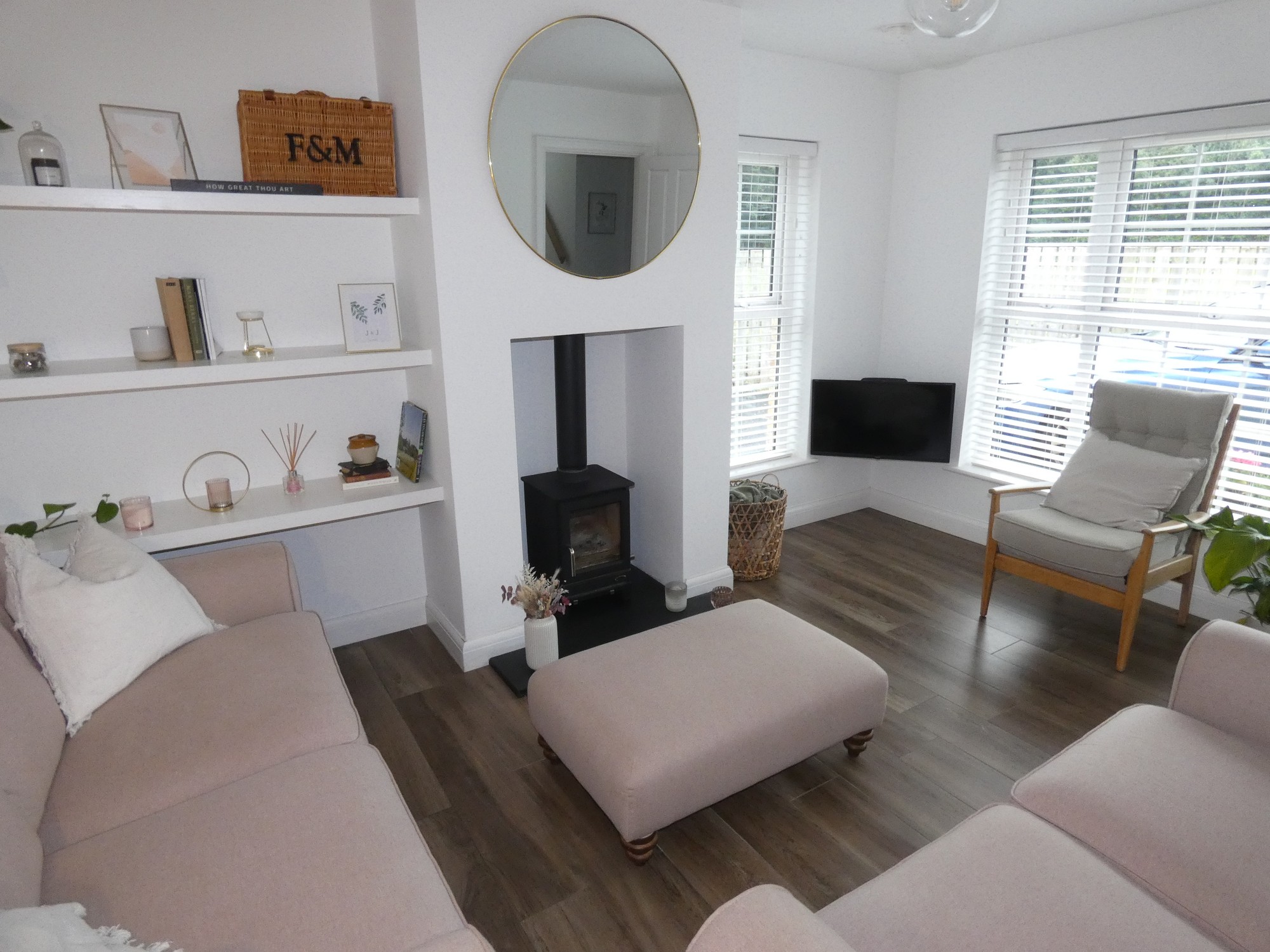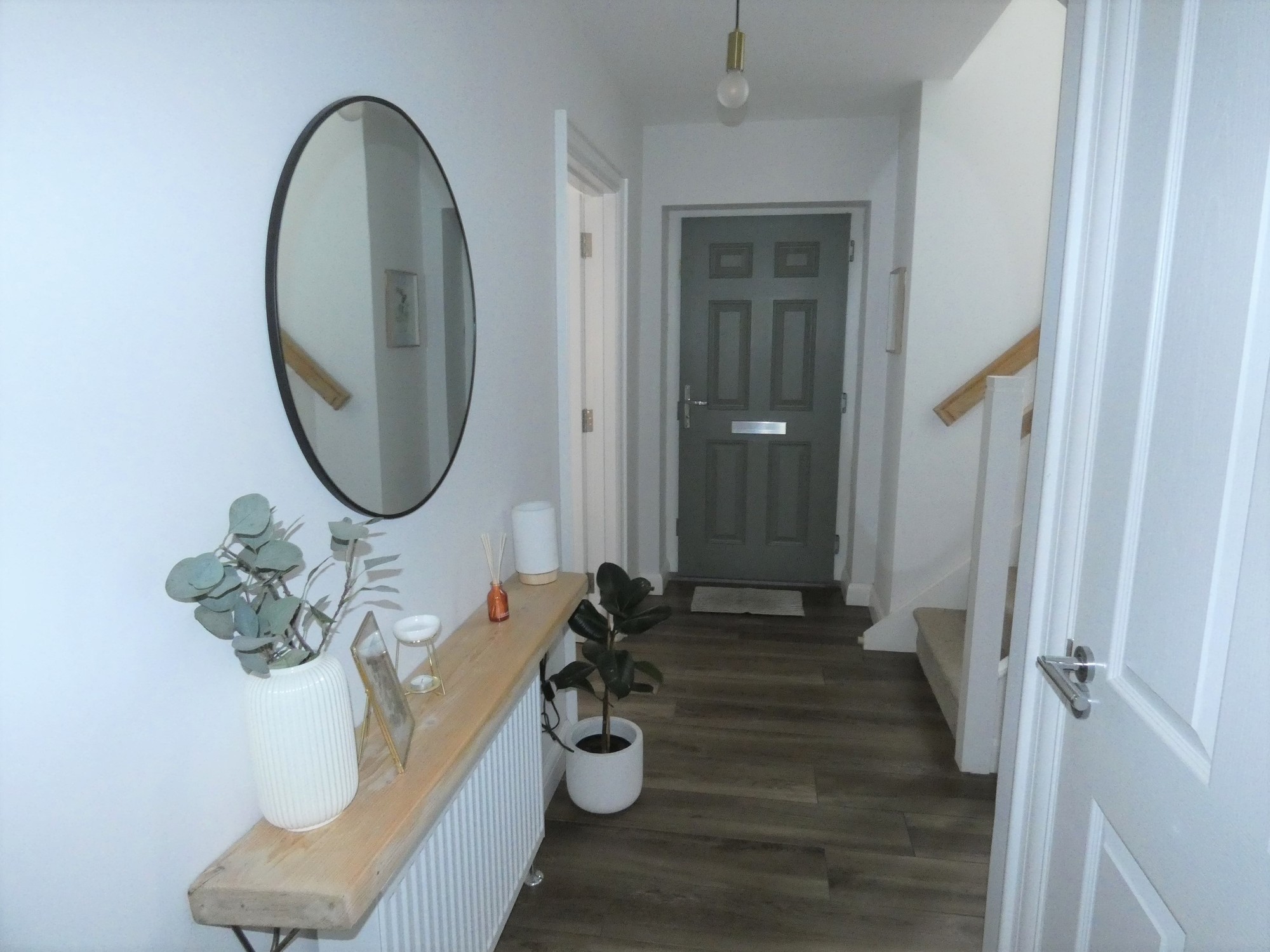 Externally the property has a spacious tarmac driveway with parking area to the front and side (can park four cars) of the property and in addition there is a garden area to the front of the property with a spacious enclosed garden in lawn to the rear of the property with a brick pavia patio area.