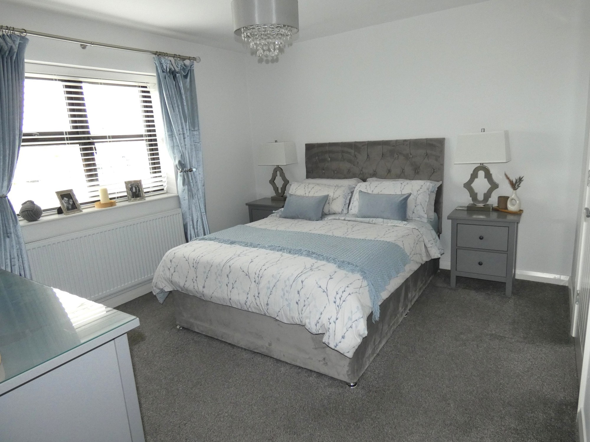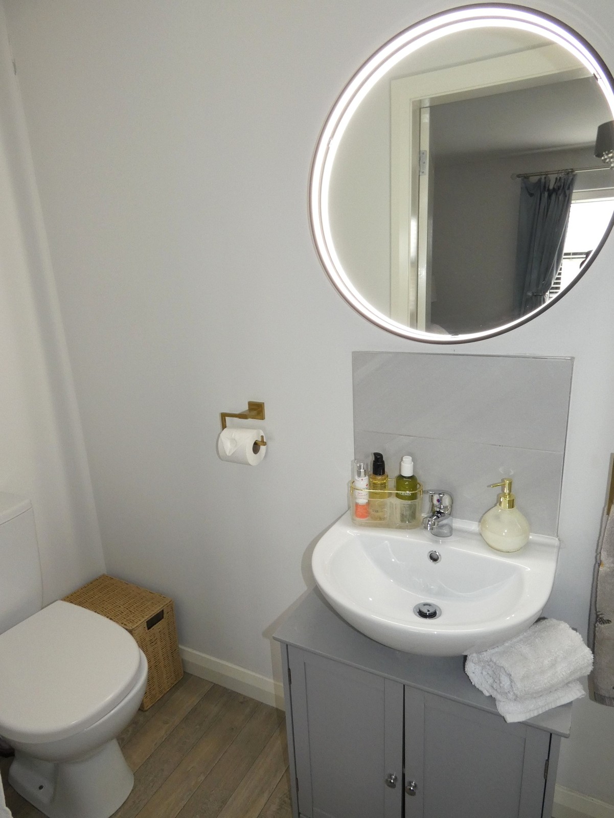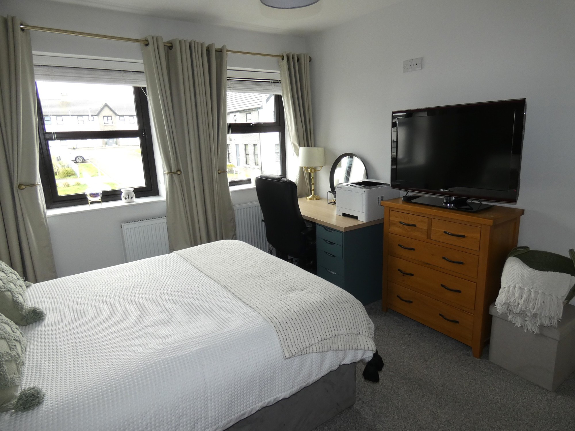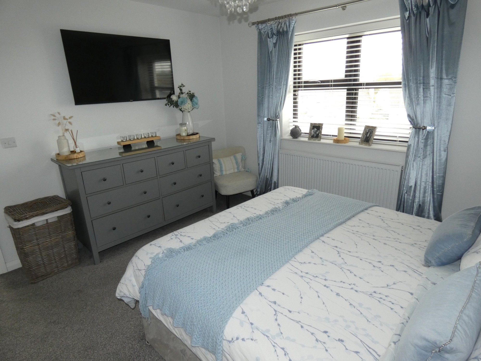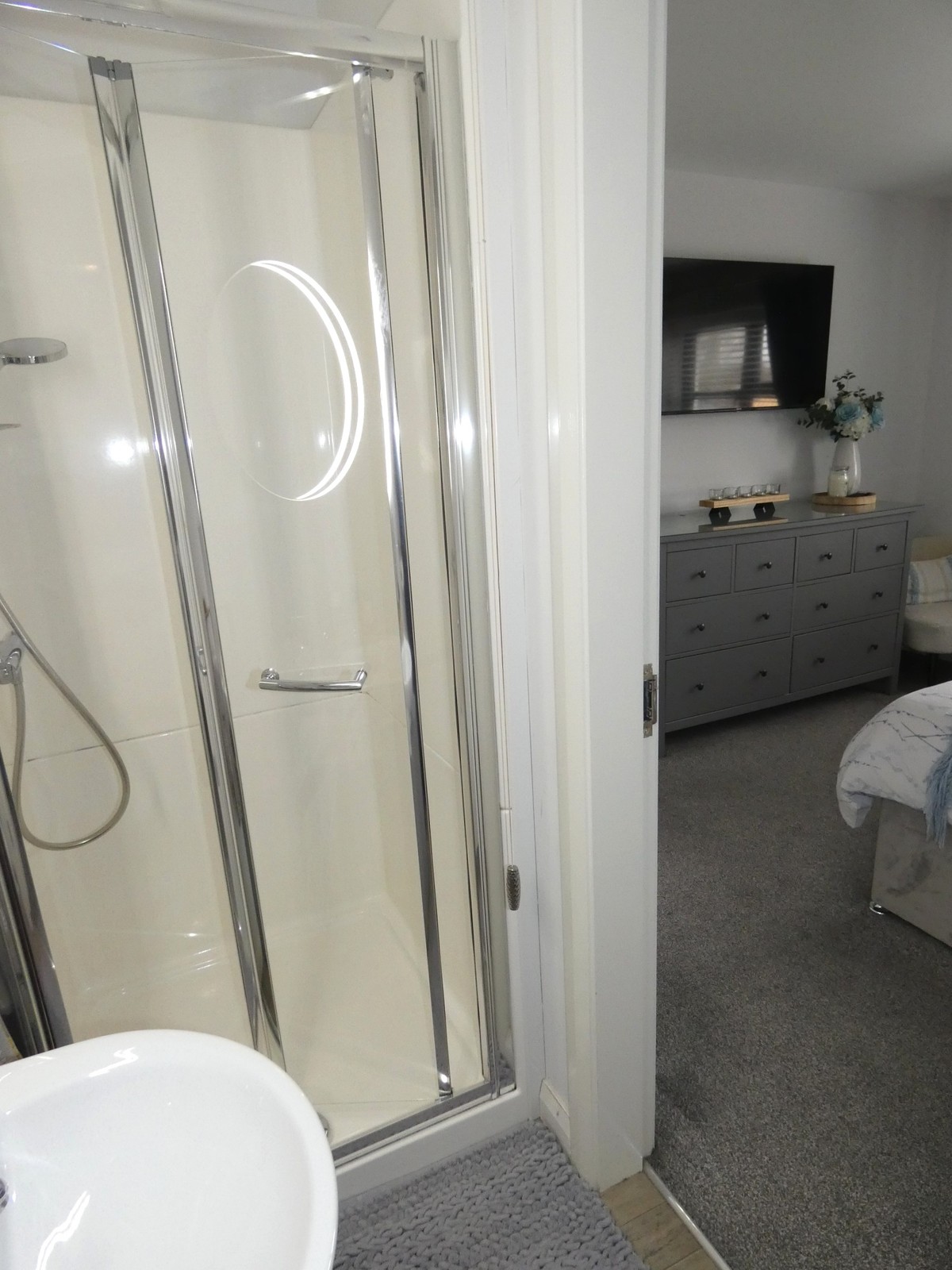 High level T.V. point and an Ensuite with a w.c, a pedestal wash hand basin with a tiled splashback, extractor fan and a pod shower cubicle with a mains mixer shower.