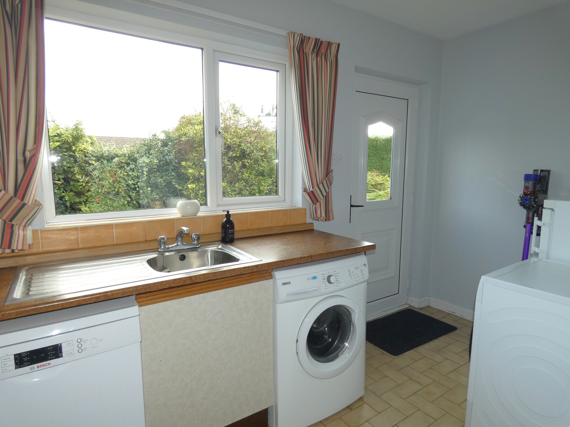 With worktop, stainless steel sink unit, low level unit, plumbed for an automatic washing machine, space for a tumble dryer, tiled above worktop, tiled floor, extractor fan.