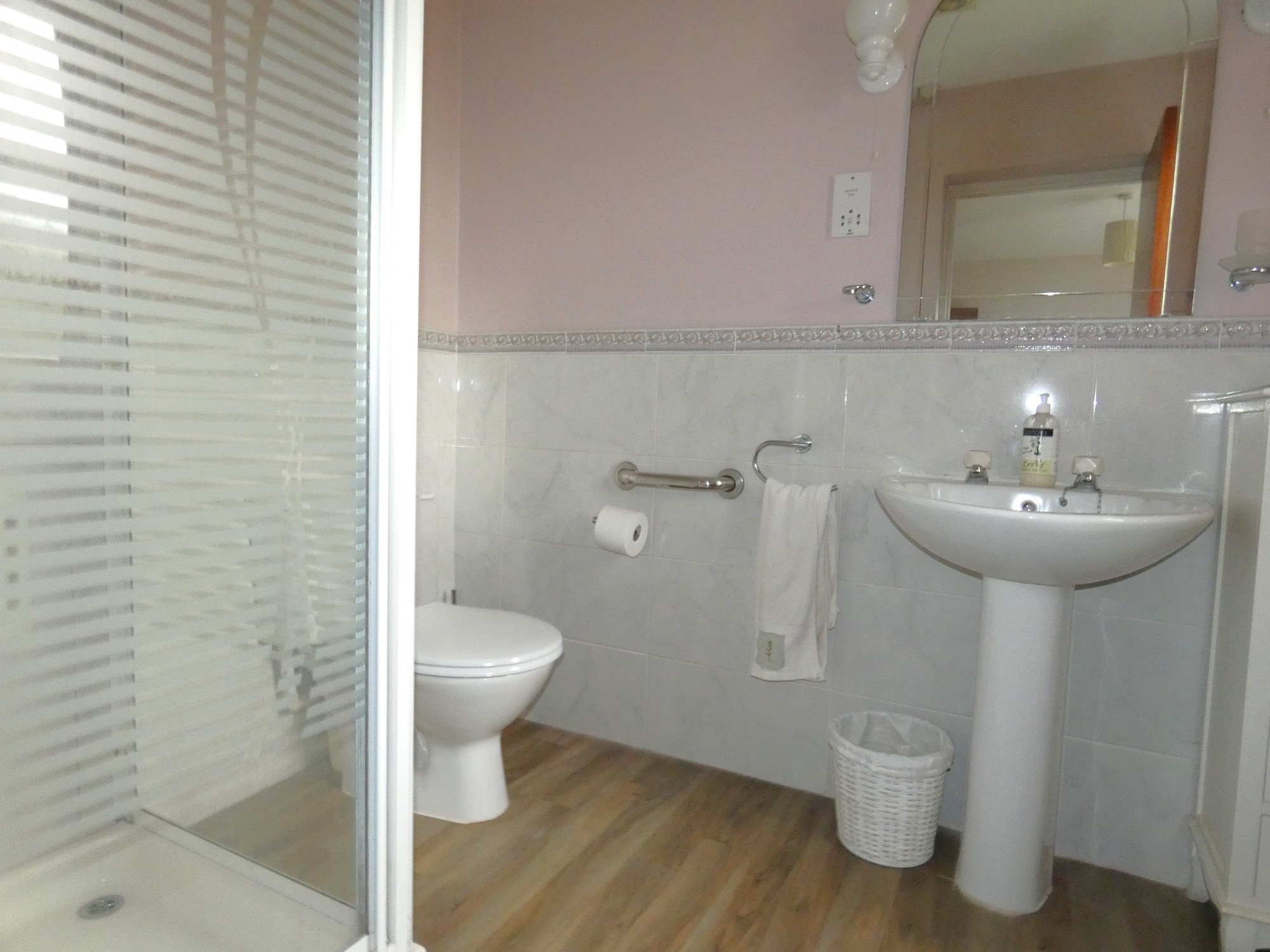 Ensuite: 7"8 x 5"10 with Mira Sport electric shower, tiled cubicle, w.c, wash hand basin, part tiled walls, tiled floor, shaver point, points for wall lights.