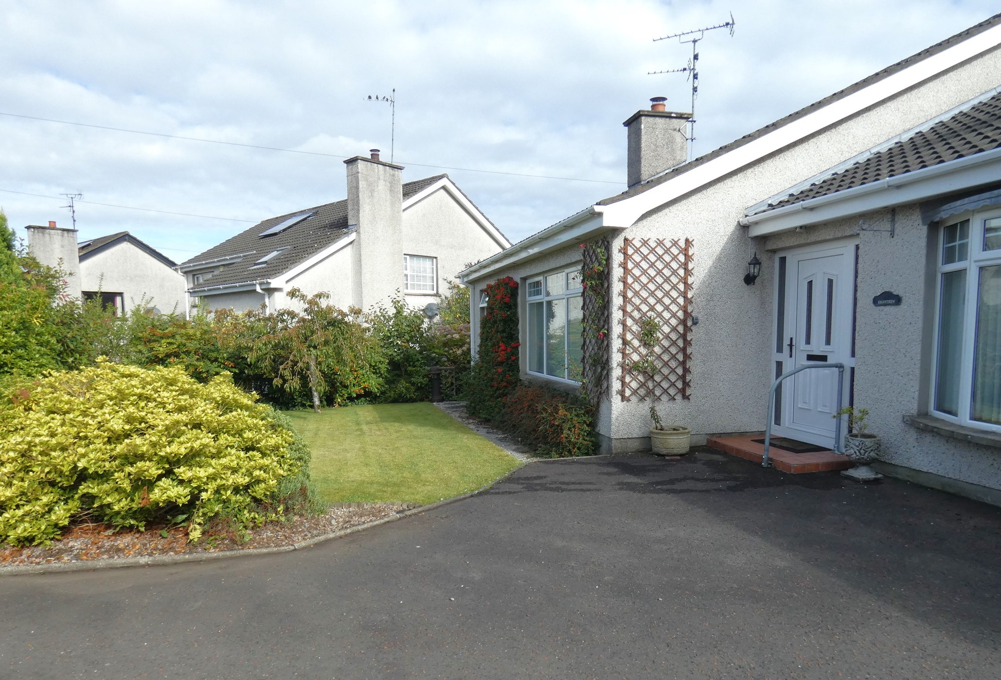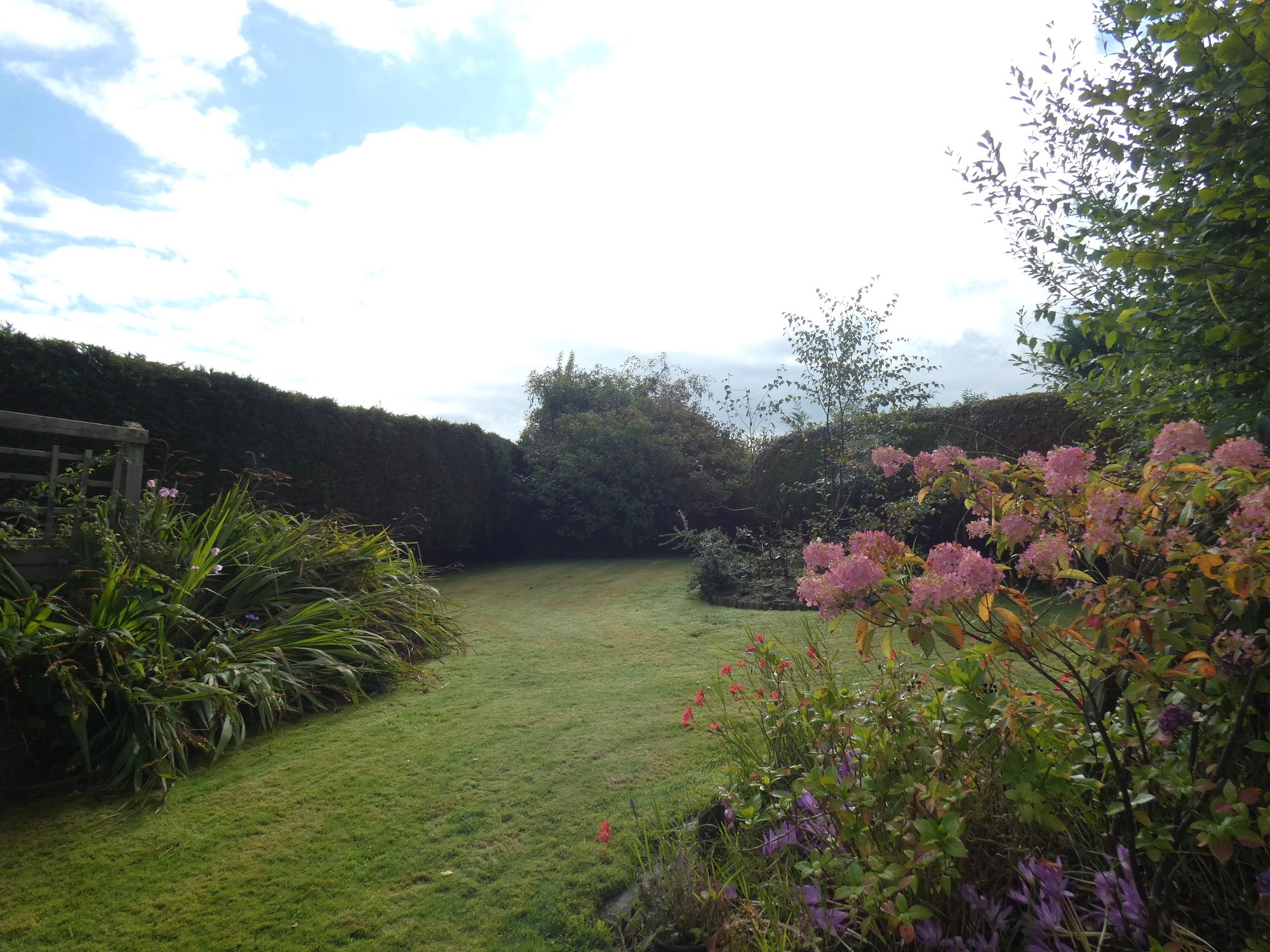 Picturesque mature garden in lawn to rear of property with mature shrubs/bushes.