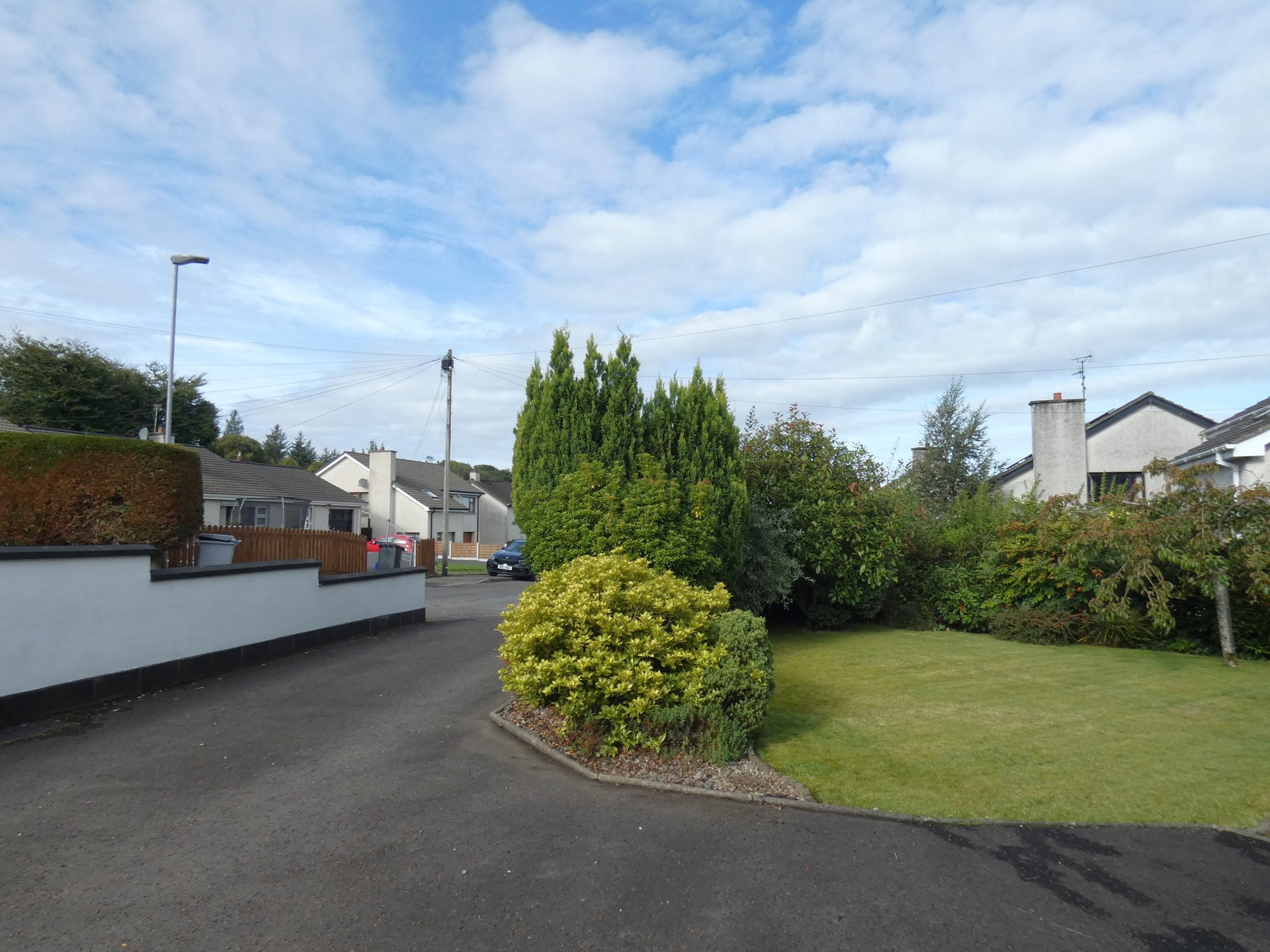 Mature garden in lawn to front of property with decorative shrub/bush borders.