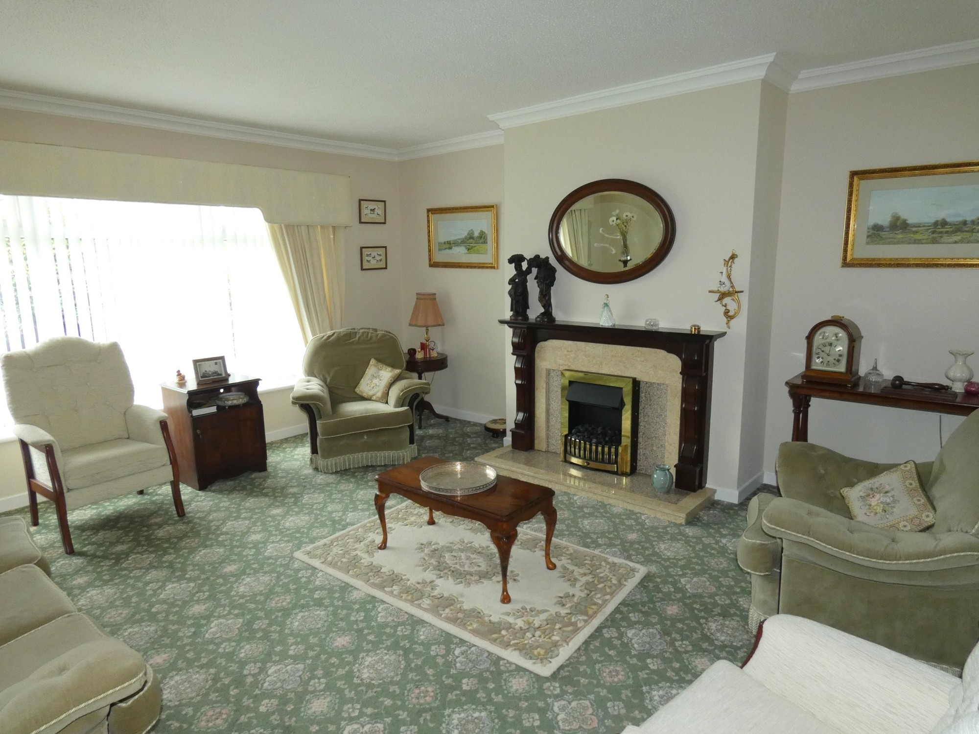 Attractive fireplace, wooden surround, T.V. point, coved ceiling, points for wall lights.