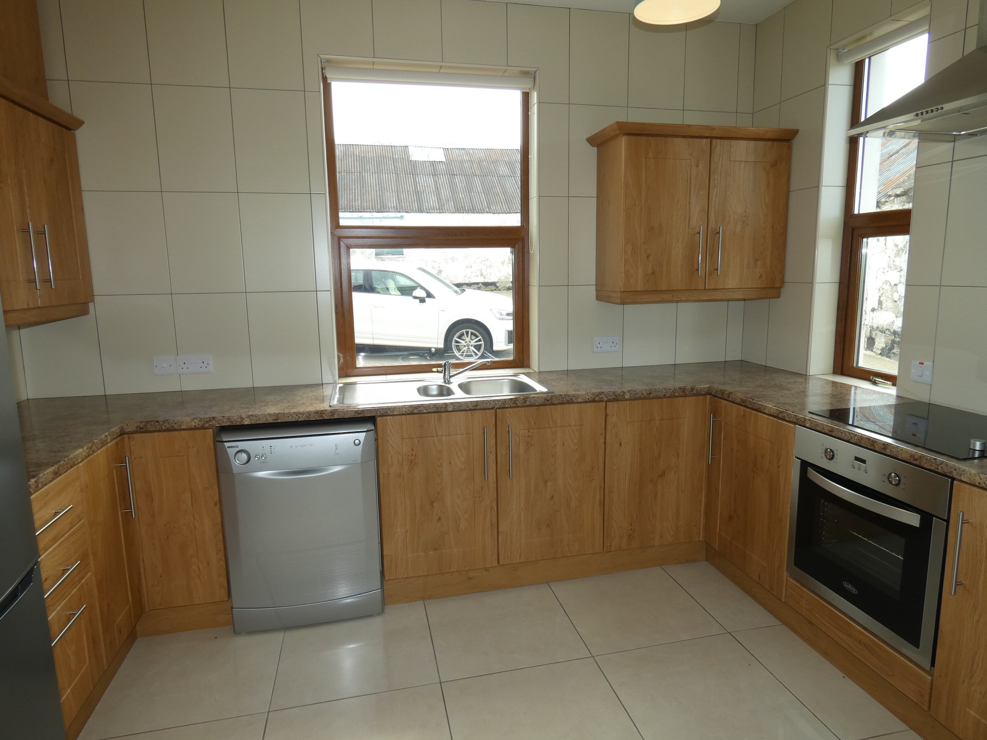 A fantastic triple aspect kitchen/living room - with a range of fitted units, bowl and a half stainless steel sink, tiled between the worktops and the eye level units, âBellingâ fan oven, ceramic hob with a stainless steel extractor fan, space for an upright fridge/freezer, plumbed for an automatic dishwasher, tiled floor, dining/sitting area and again superb views over the surrounding countryside.