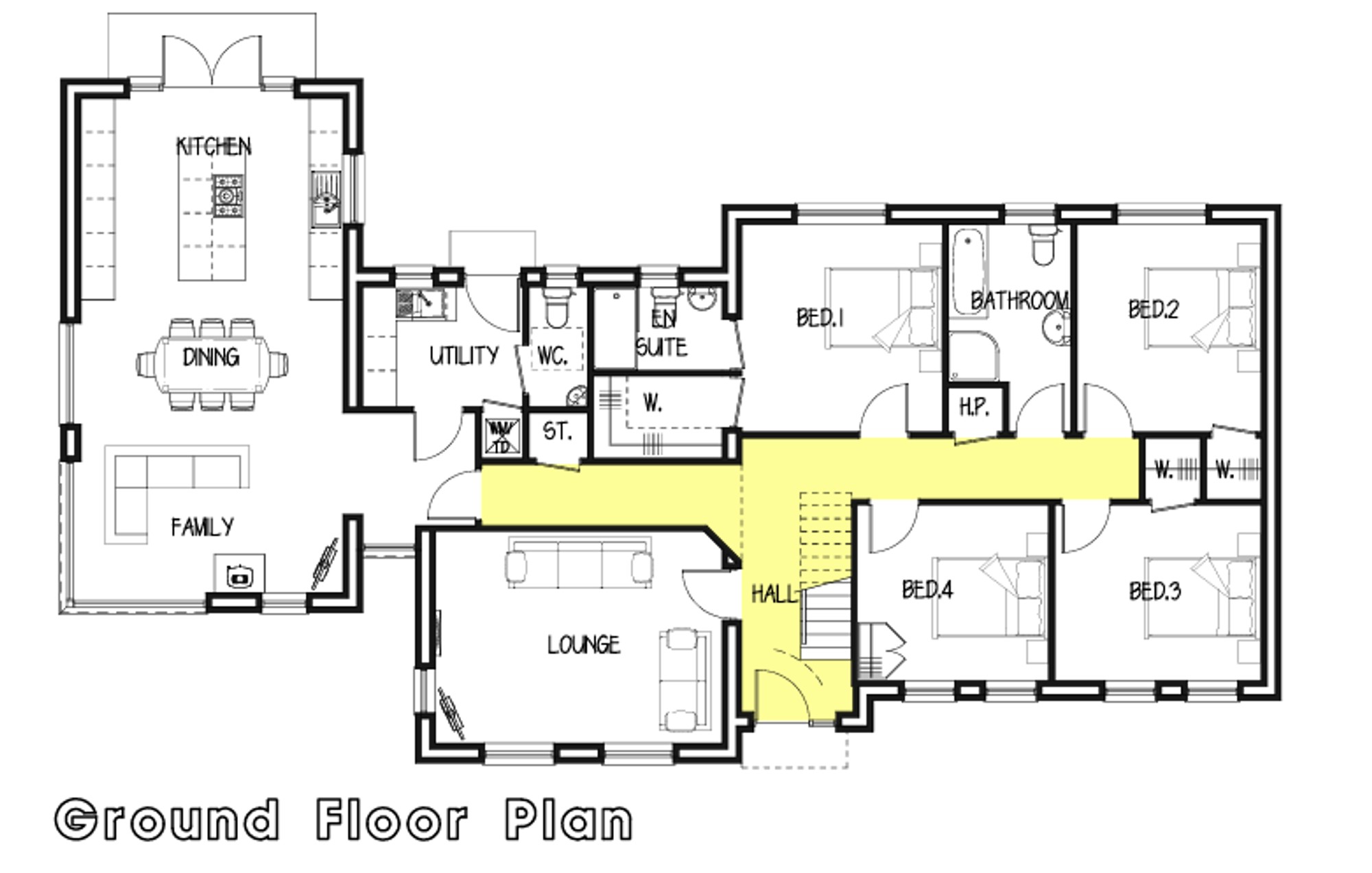 Choice of floor tiling from range to entrance hall, w/c, kitchen/dining/living area, utility and cloaks lobby, bathroom & ensuite