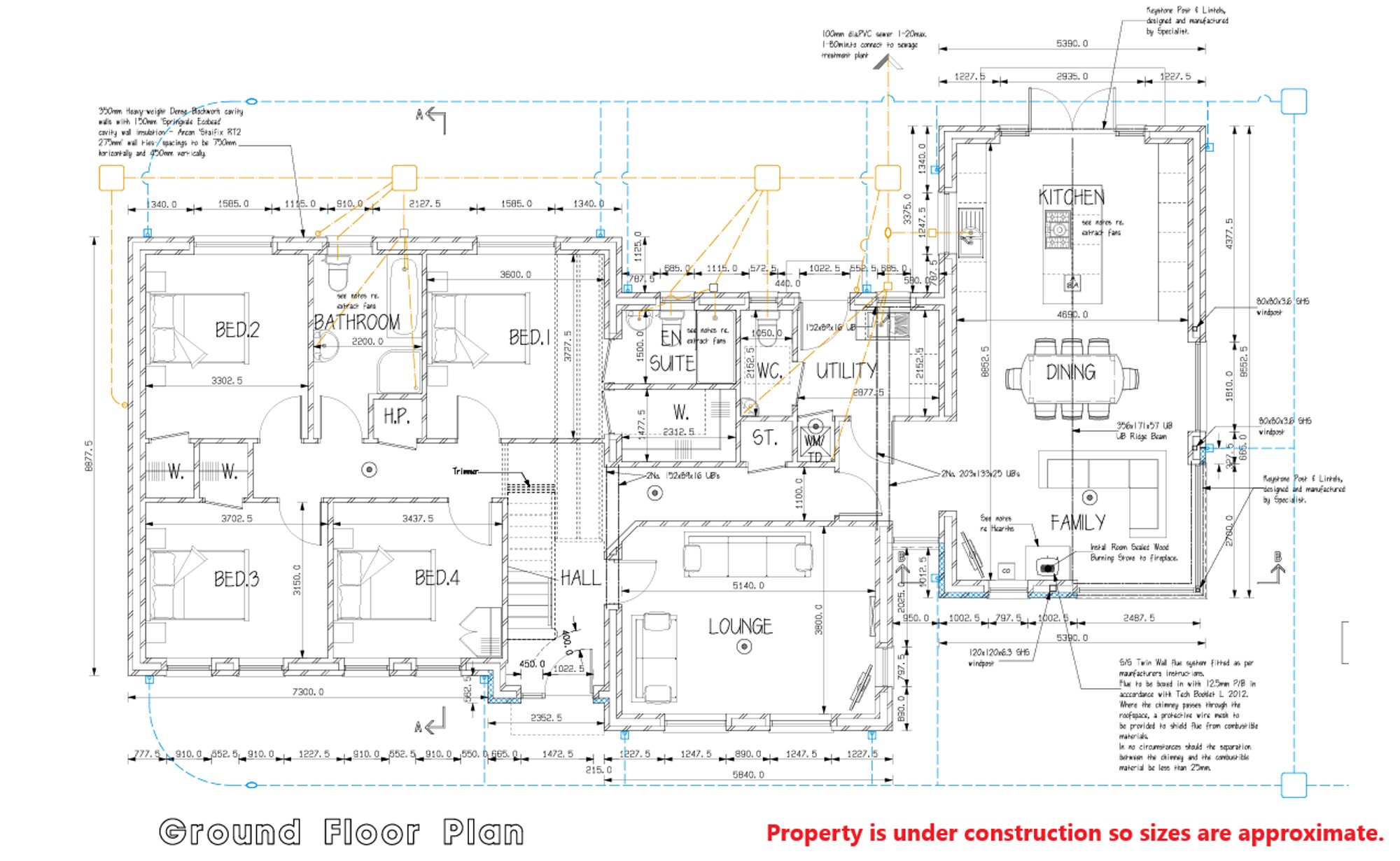 Currently under construction and being developed by locally based Kenver Estates Ltd, comprising a very high-spec, energy-efficient premium detached 6-bedroom, 3 Ensuite chalet bungalow; Block built and finished with render and modern features on this stunning new home that exudes style and quality suited to individual family needs.
