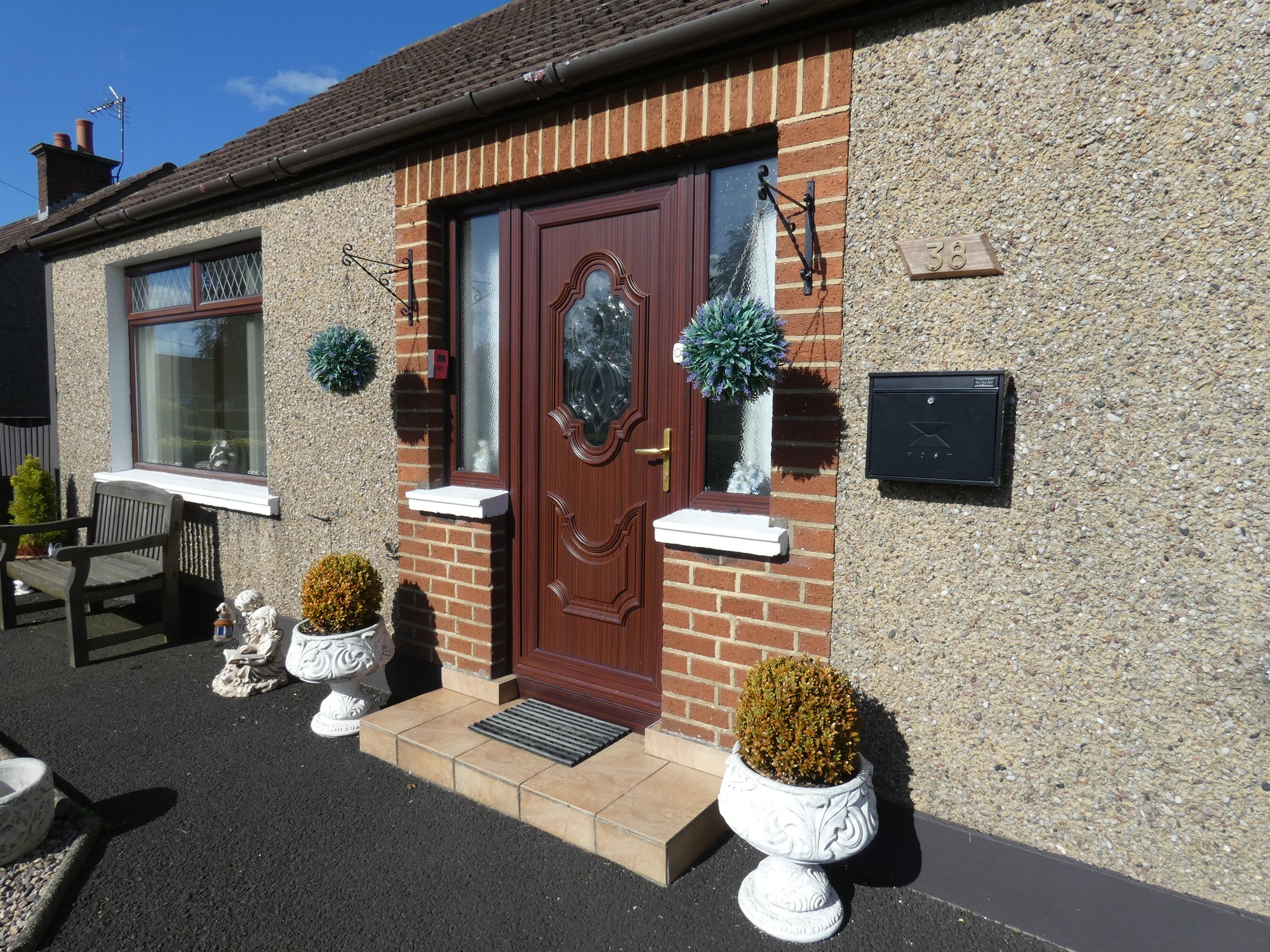 Number 38 occupies a choice situation within walking distance to the town centre, local schools and amenities. Leave the town centre on Queen Street continuing straight ahead at the roundabout onto the Rodeing Foot and then right at the next roundabout onto the Garryduff Road. After circa 0.4 miles turn right into Cherry Gardens and then right again after about 100 yards - number 38 is then the fourth home on the right hand side.