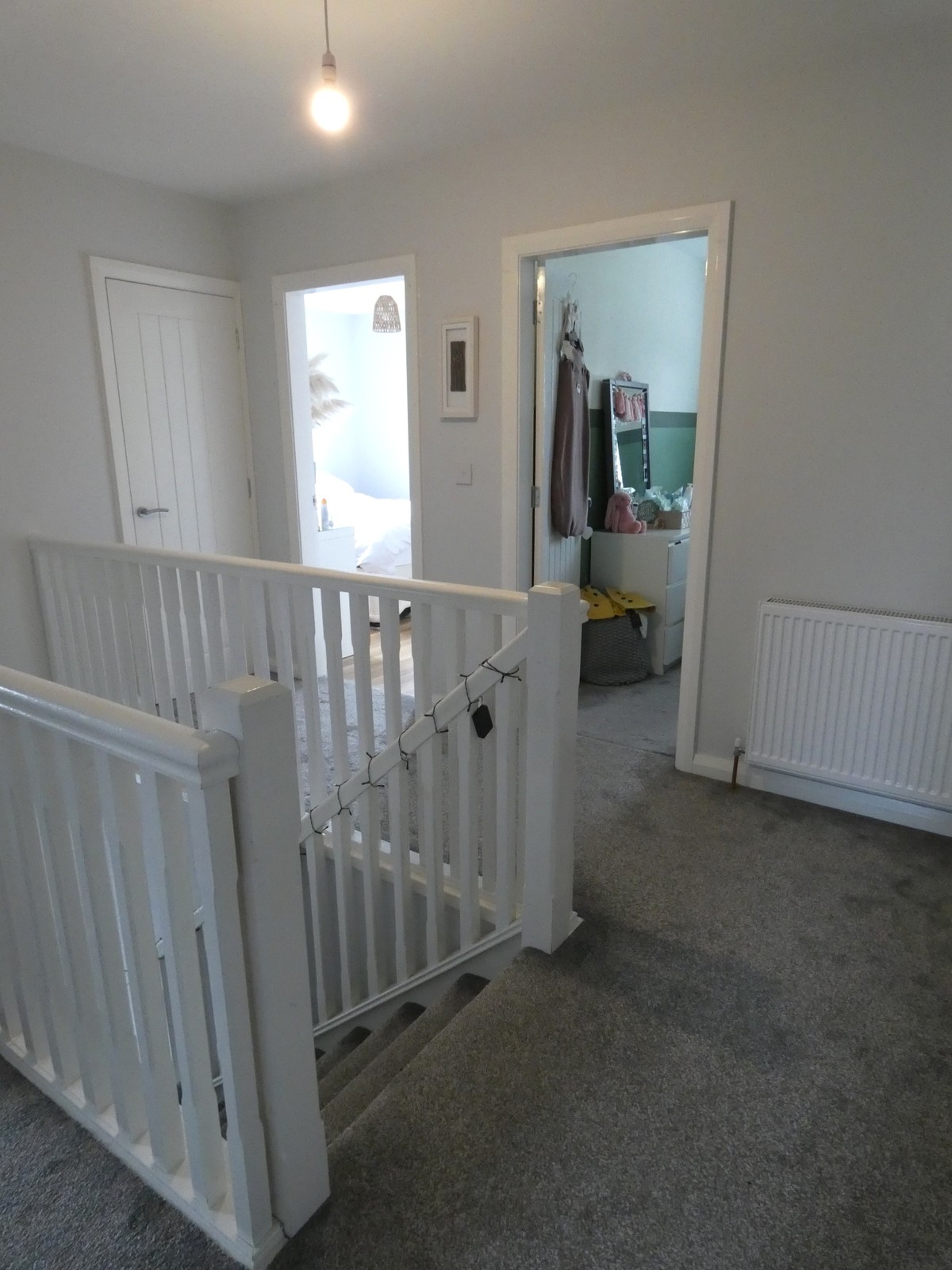 Gallery landing area with a shelved airing cupboard.