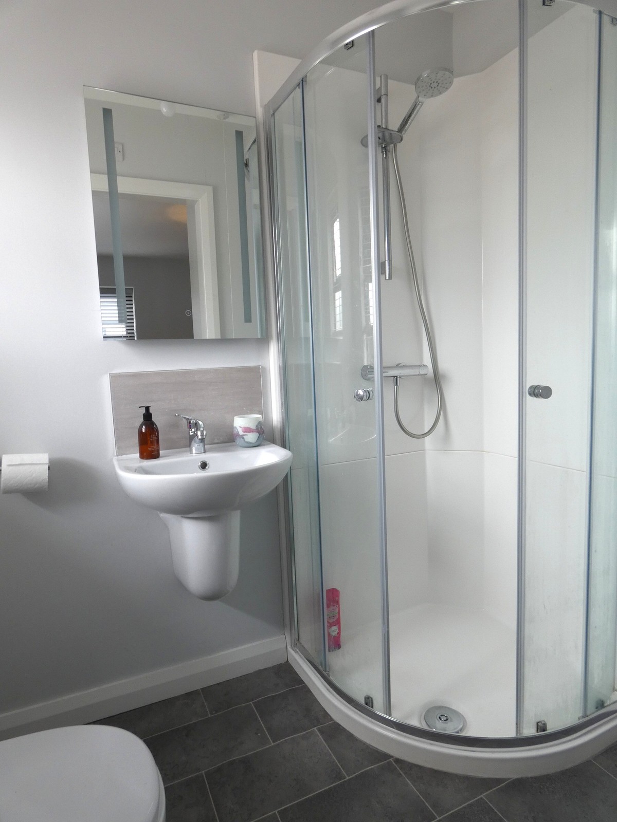Spacious family bathroom including a second pod shower cubicle.